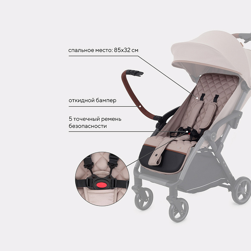 - надежный регулируемый 5-точечный ремень обеспечит крохе дополнительную безопасность