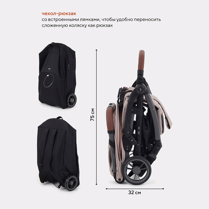 - в комплектации объемный чехол с встроенными лямками, чтобы удобно переносить сложенную коляску как рюкзак