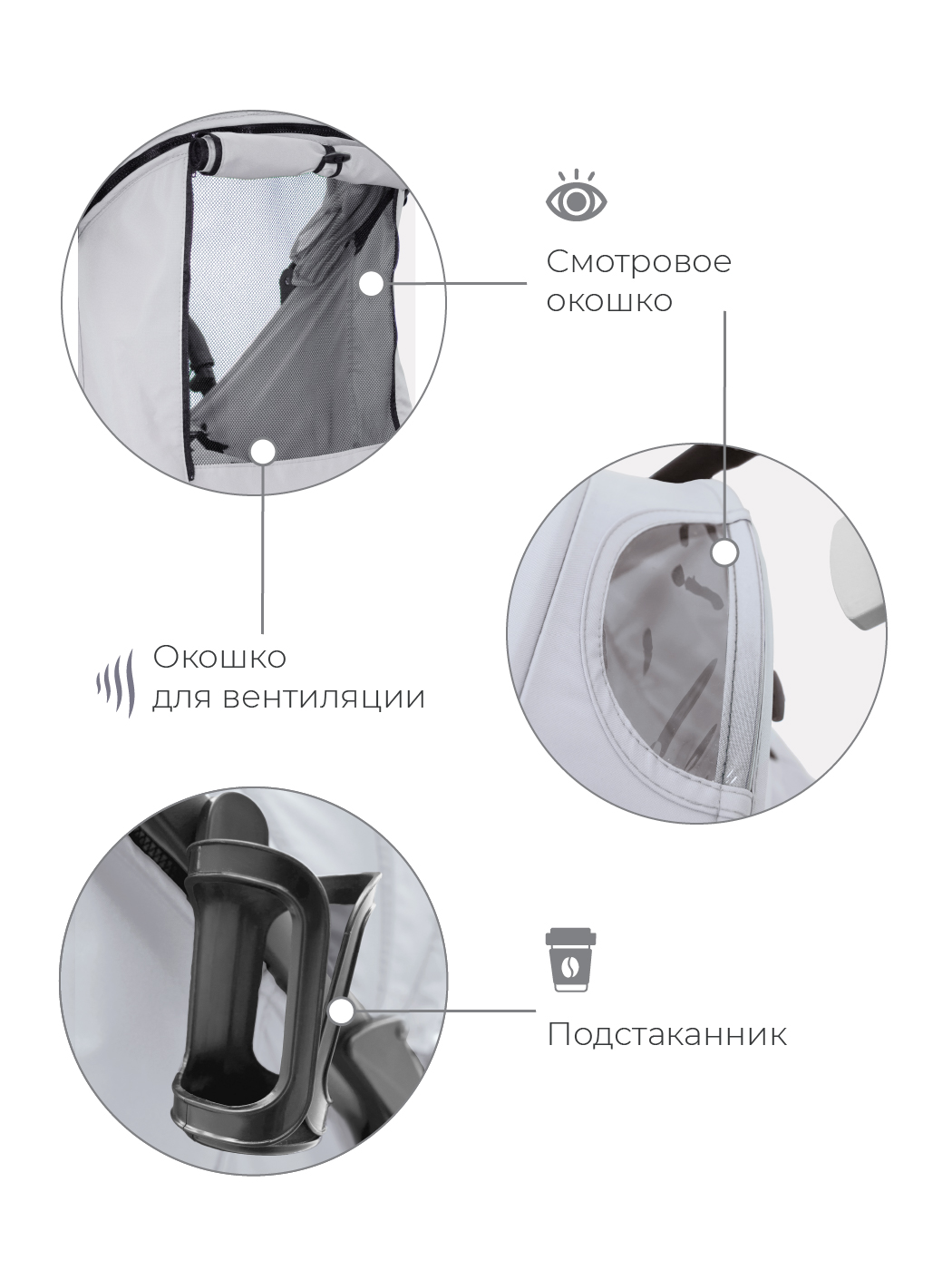 В комплекте: накидка на ножки, транспортировочная сумка -чехол, подстаканник, силиконовый дождевик.
