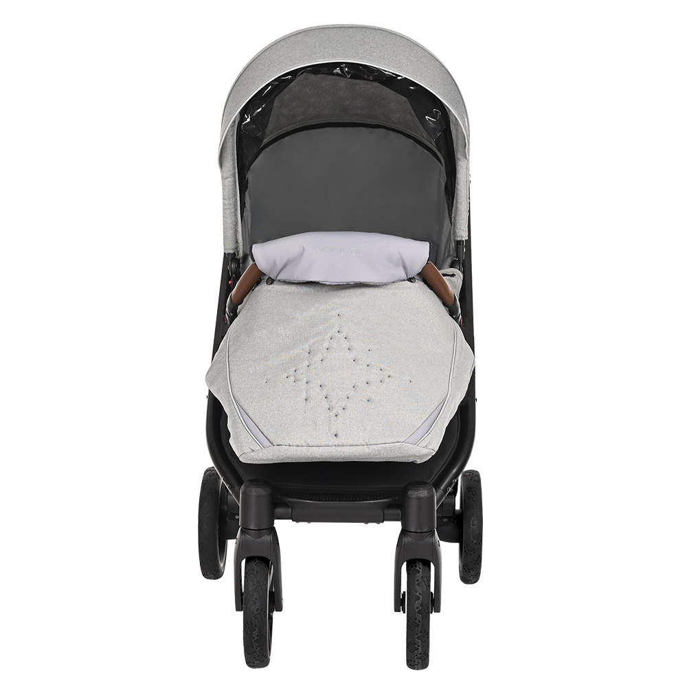Капюшон с козырьком и дополнительной секцией расширения с москитной сеткой.
