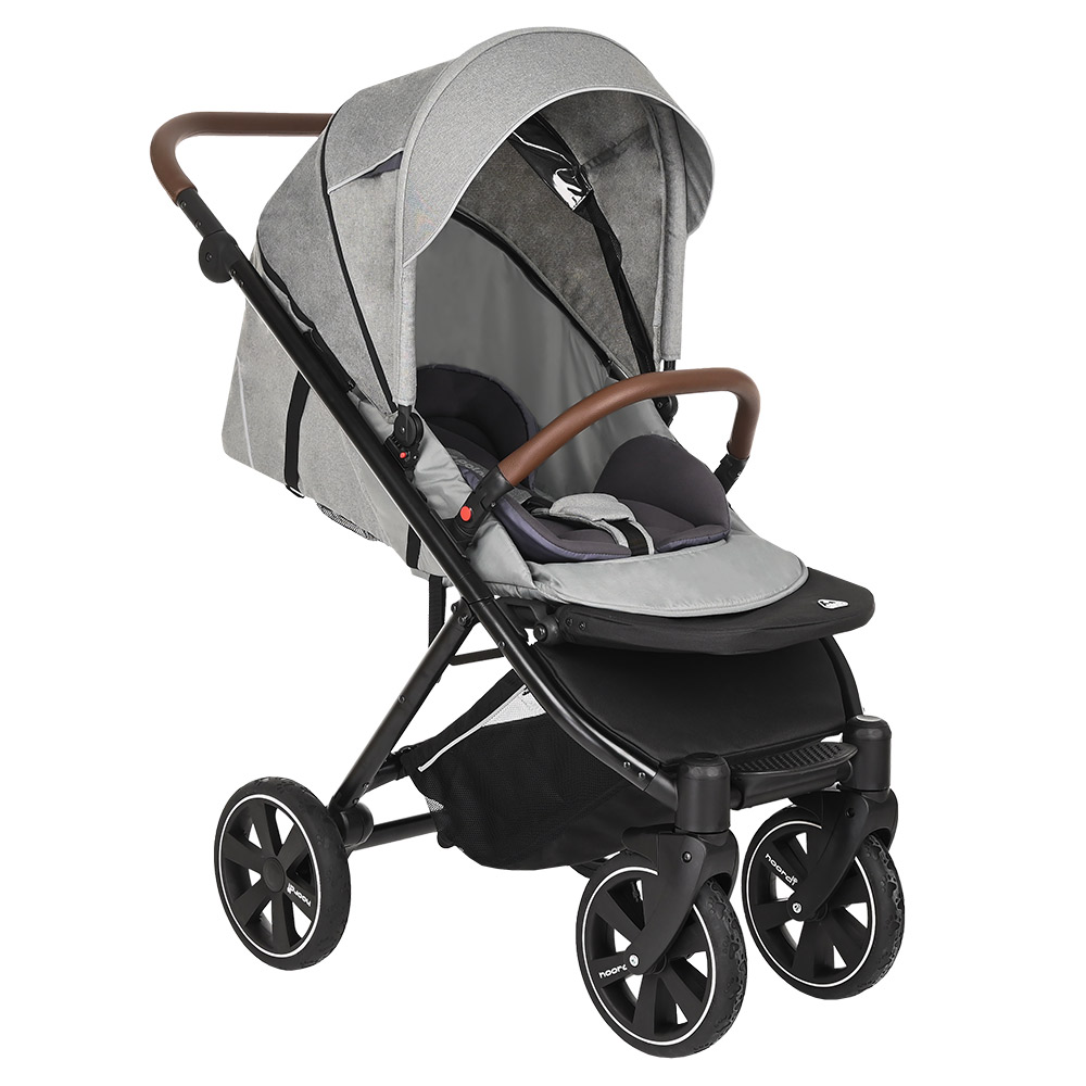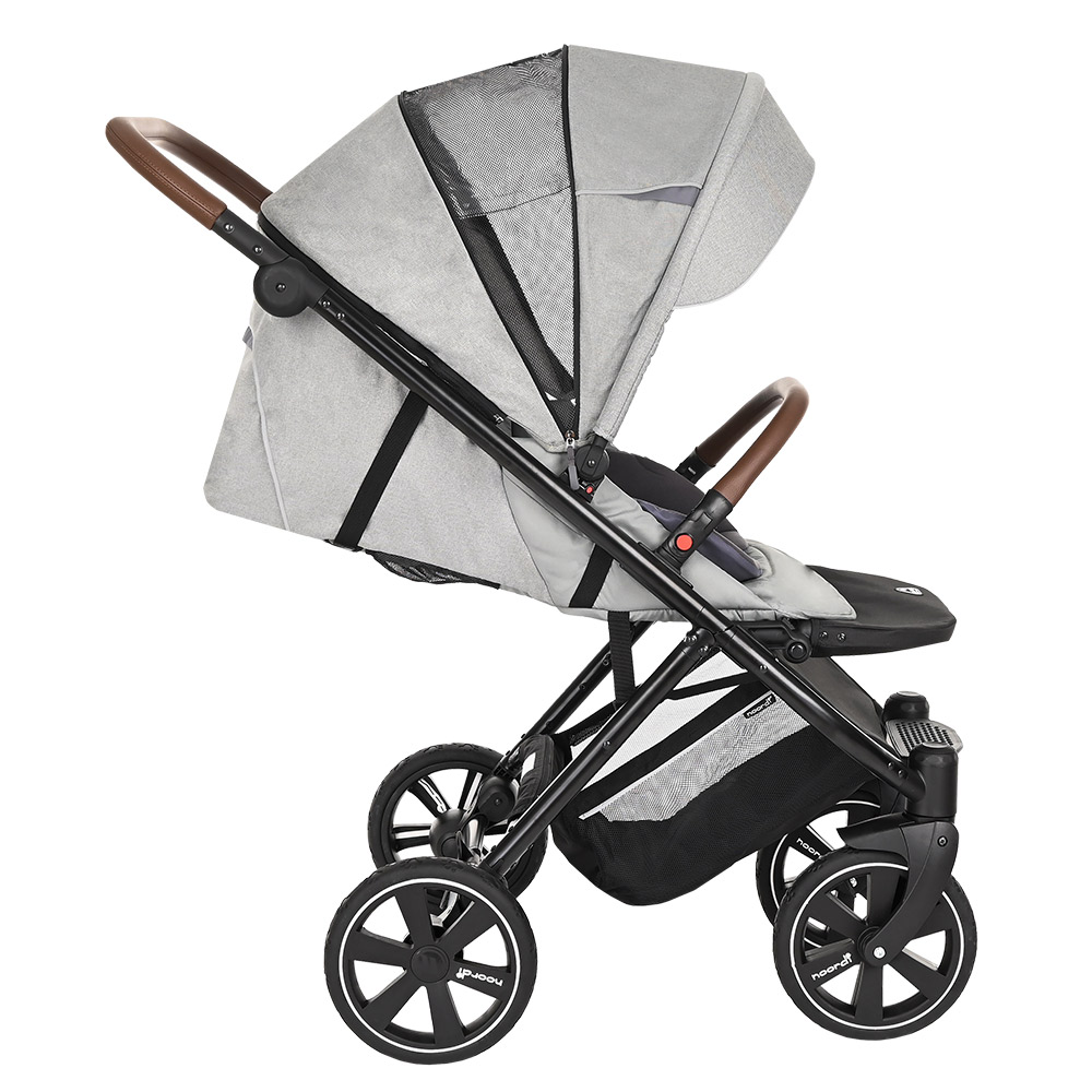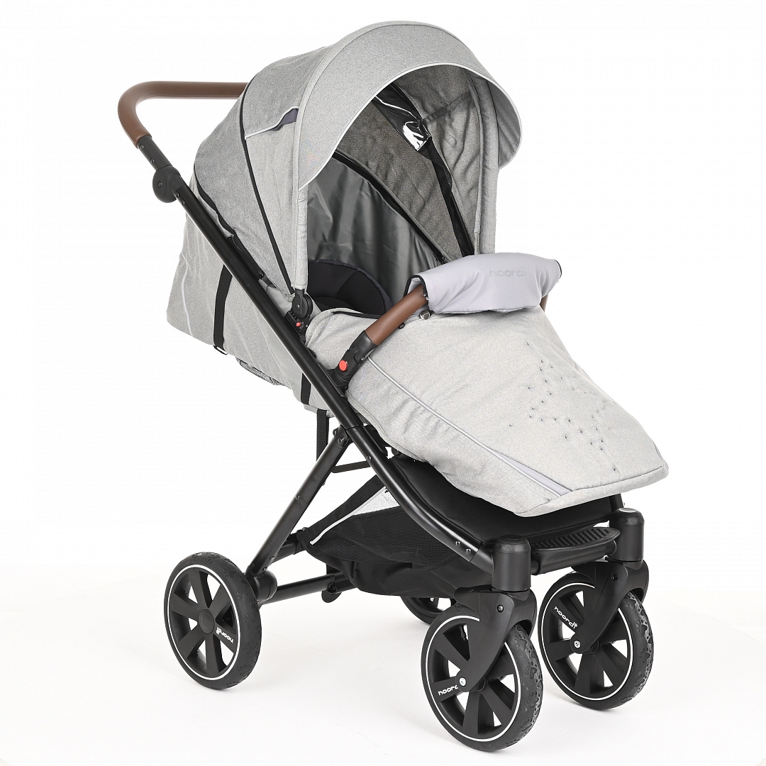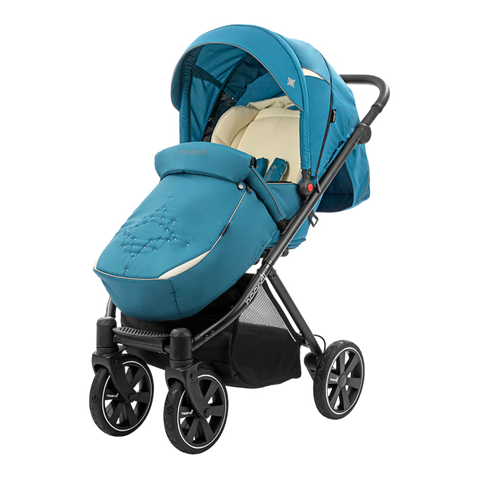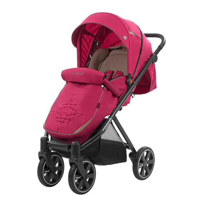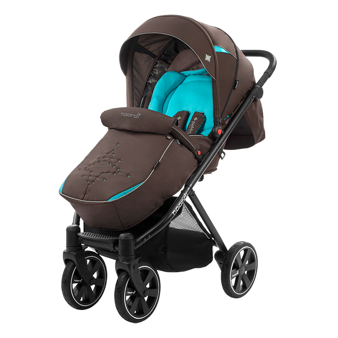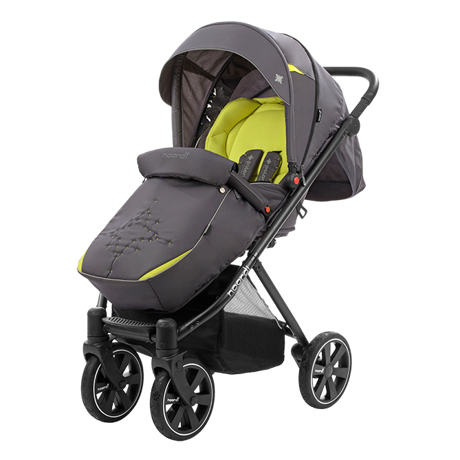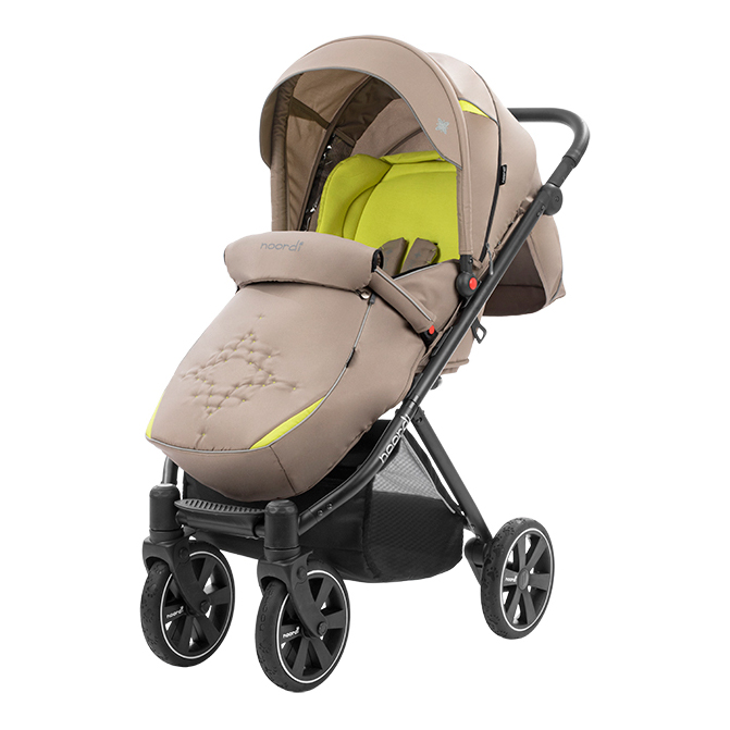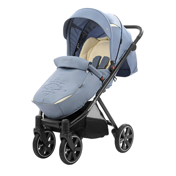 Прогулочная коляска NOORDI POLARIS SPORT (Норди поларис спорт) - спортивная прогулочная коляска с большим и широким спальным местом. Ширина коляски составляет 40 см, а длина спального места вместе с подножкой 98 см. Это коляска создана для комфортных прогулок с ребёнком, даже если он одет в тёплый зимний комбинезон. Спинка регулируется плавно с помощью ременной системы до почти горизонтального положения. Дополнительный комфорт создаст мягкий цветной матрасик. У коляски объёмный капюшон с дополнительной секцией с антимоскитной сеткой, которая опускается почти до бампера.