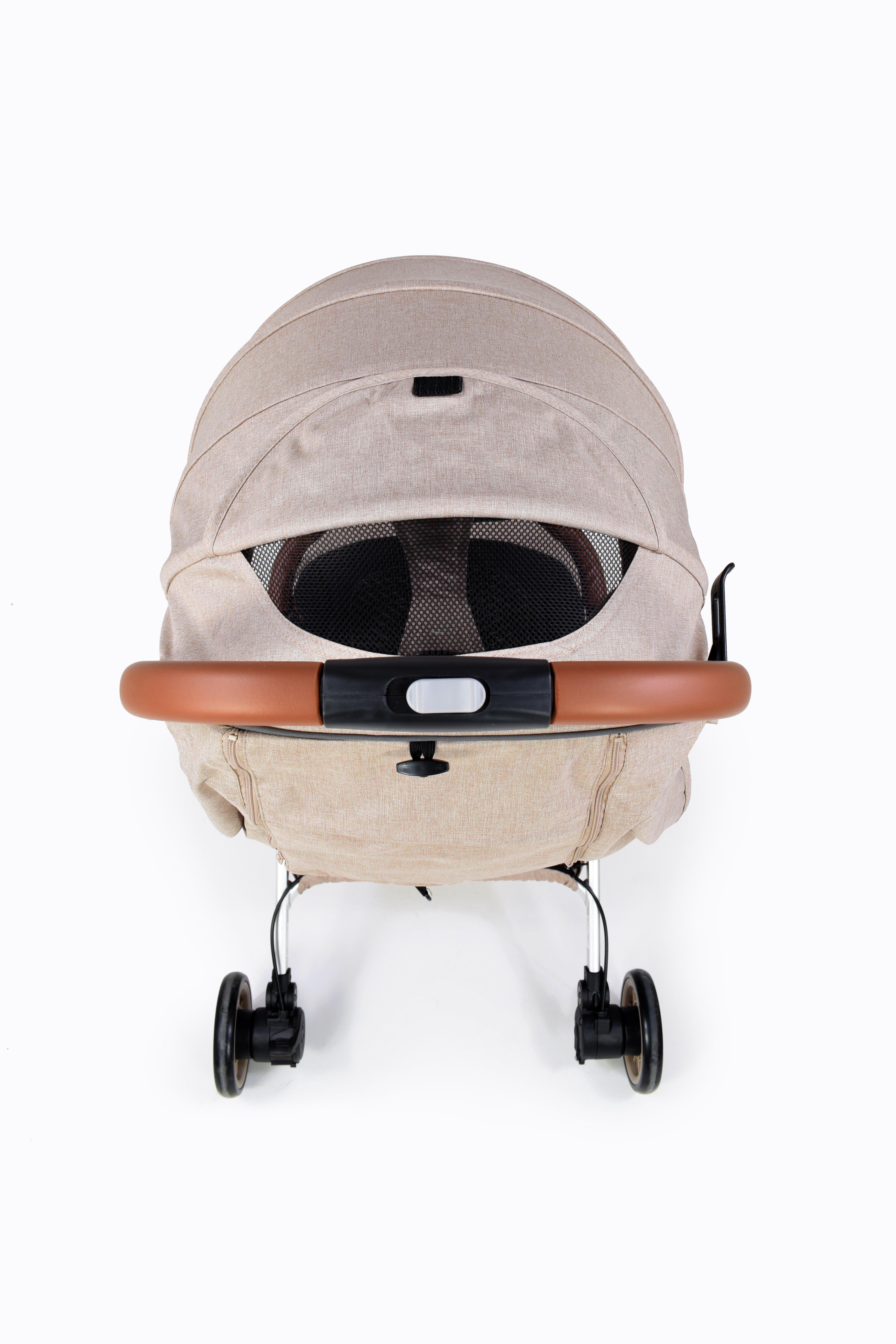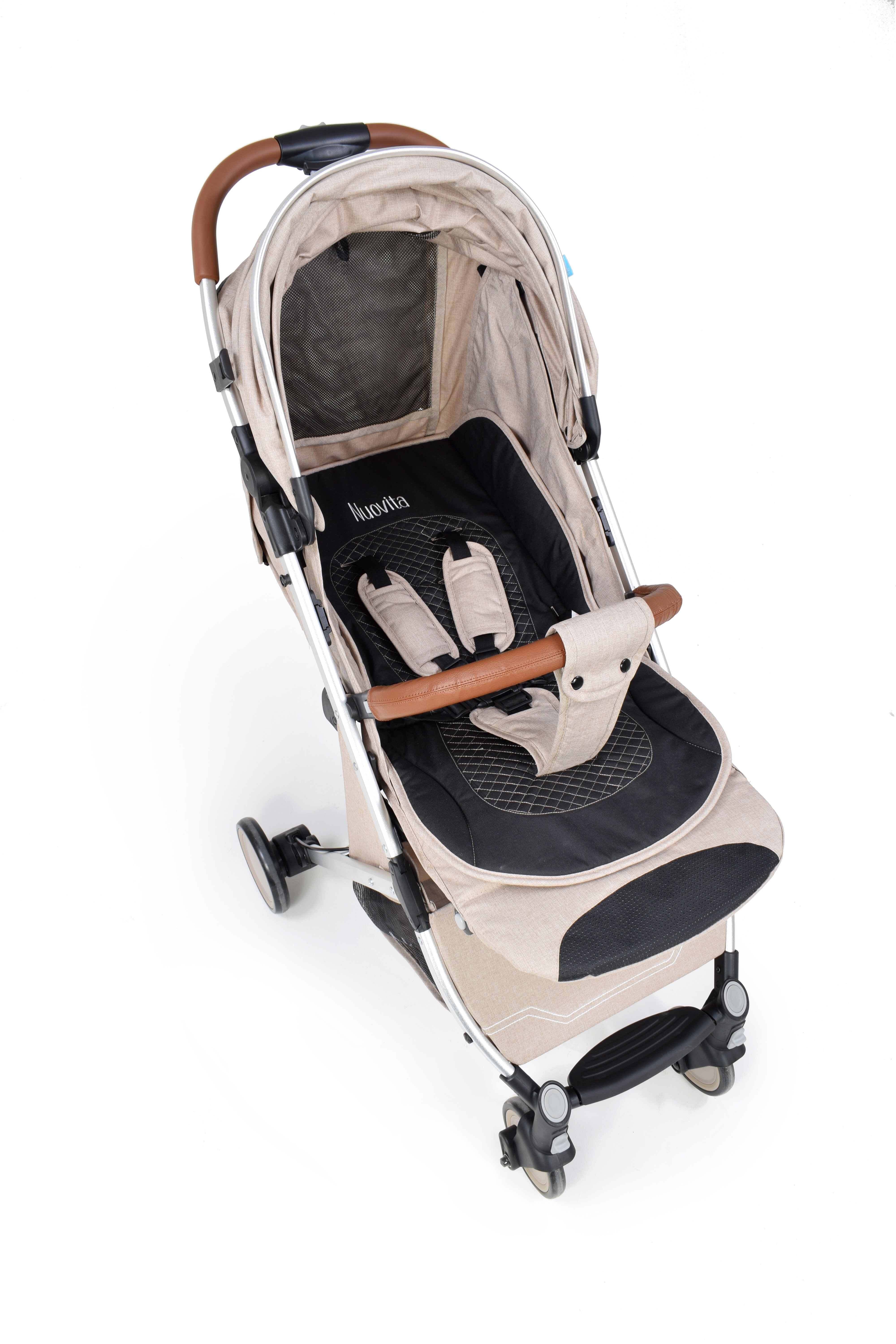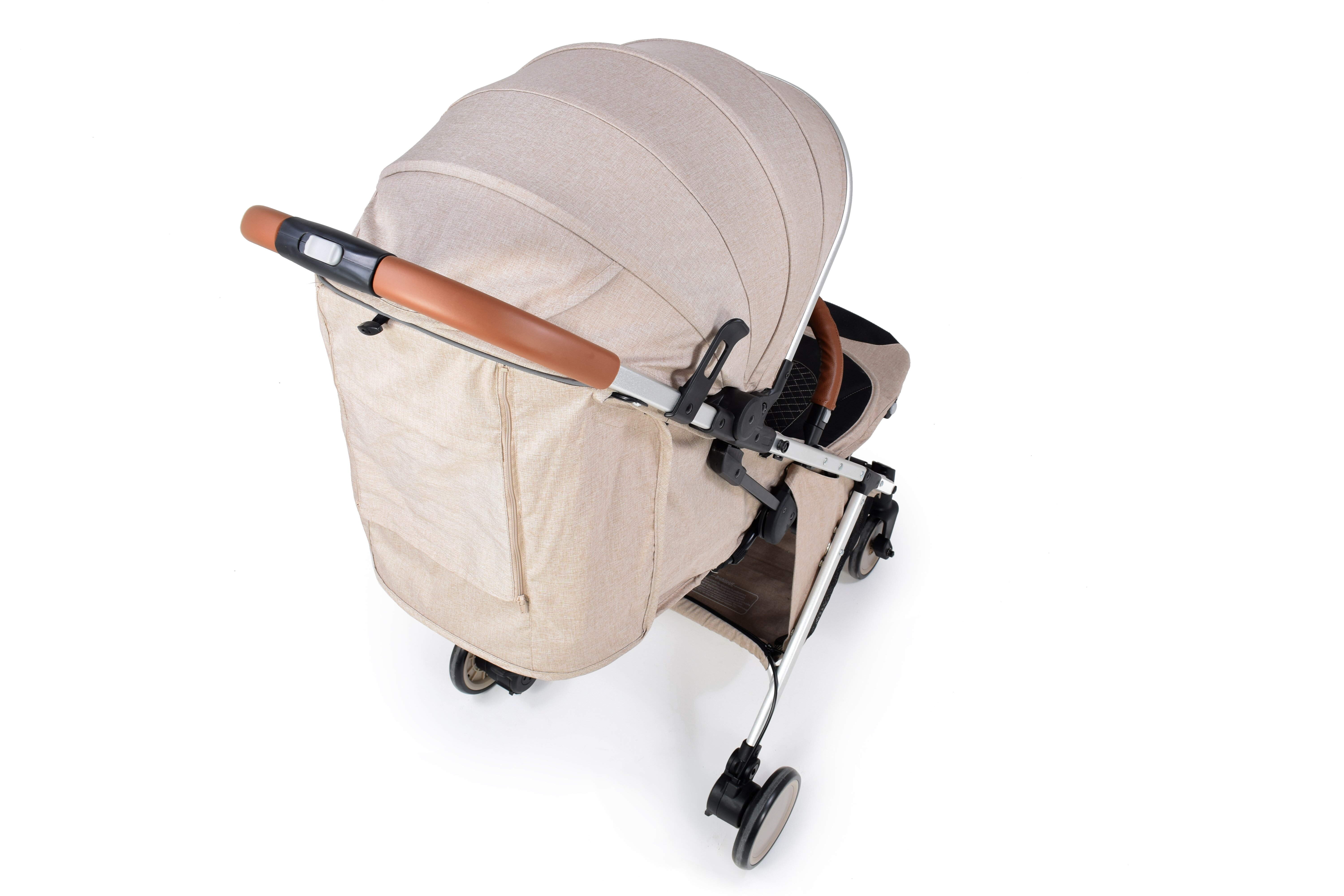Коляска отличается повышенной маневренностью и легкостью управления. Она обеспечивает максимальный комфорт ребенка даже при прогулках по грунтовым и щебеночным дорогам за счет встроенных амортизаторов передней колесной базы. Передняя колесная база является конструкцией поворотного типа, с ее помощью колеса могут поворачиваться на 360 градусов, что позволяет мамам управлять коляской одной рукой, а наличие легкодоступного ножного тормоза обеспечит надежную блокировку колес. Родительская ручка выполнена из приятного на ощупь материала, а съемный чехол защитного бампера из мягкой кожи. Детская подножка обработана устойчивым к механическим повреждениям покрытием.