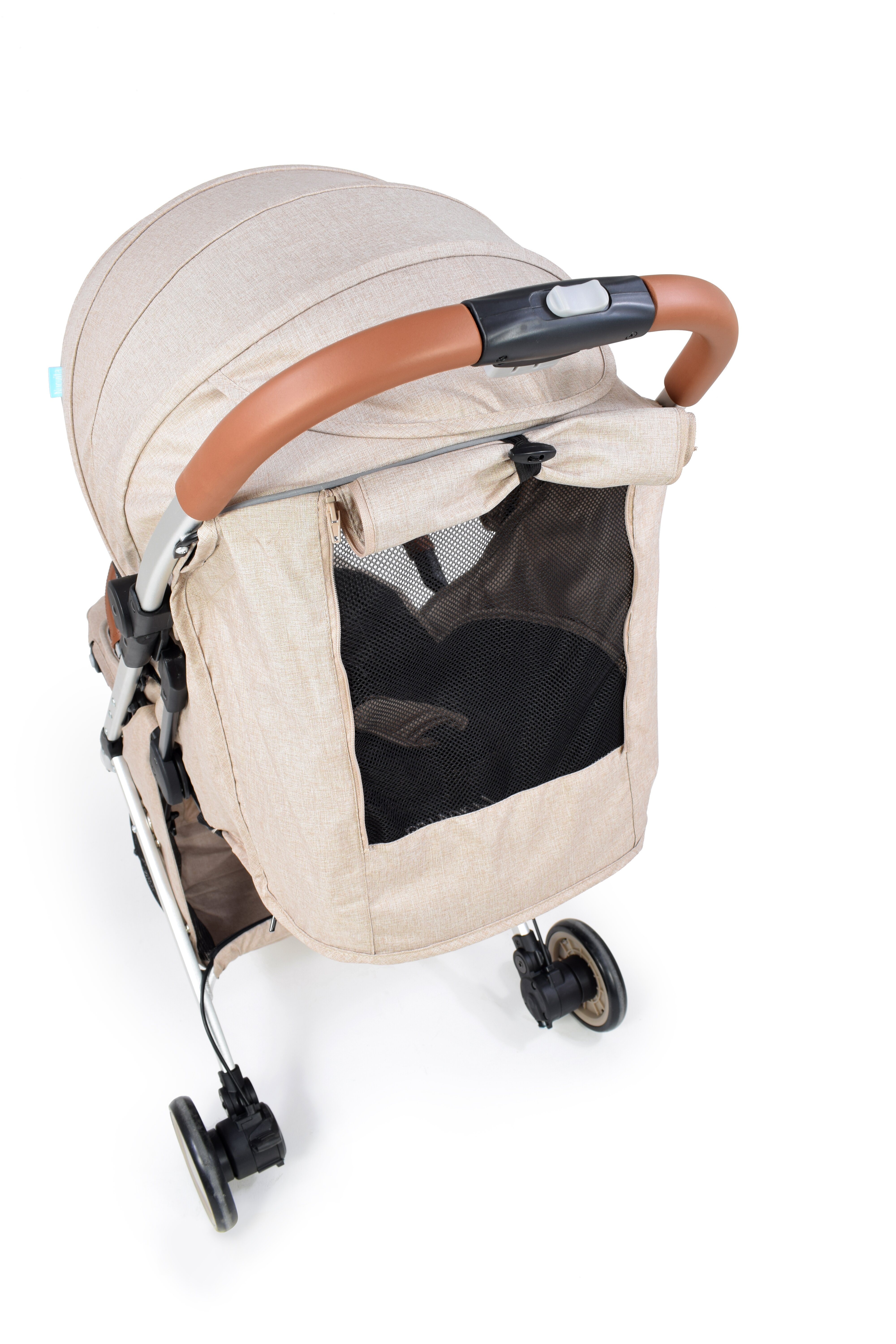В сложенном виде за счет своих конструктивных особенностей данная модель является сумкой-тележкой на колесиках с выдвижной телескопической ручкой. При этом вес коляски-трансформера всего лишь 8.5 кг. Трансформацию из положения сумки-тележки в прогулочную коляску можно произвести мгновенно всего одним нажатием руки.