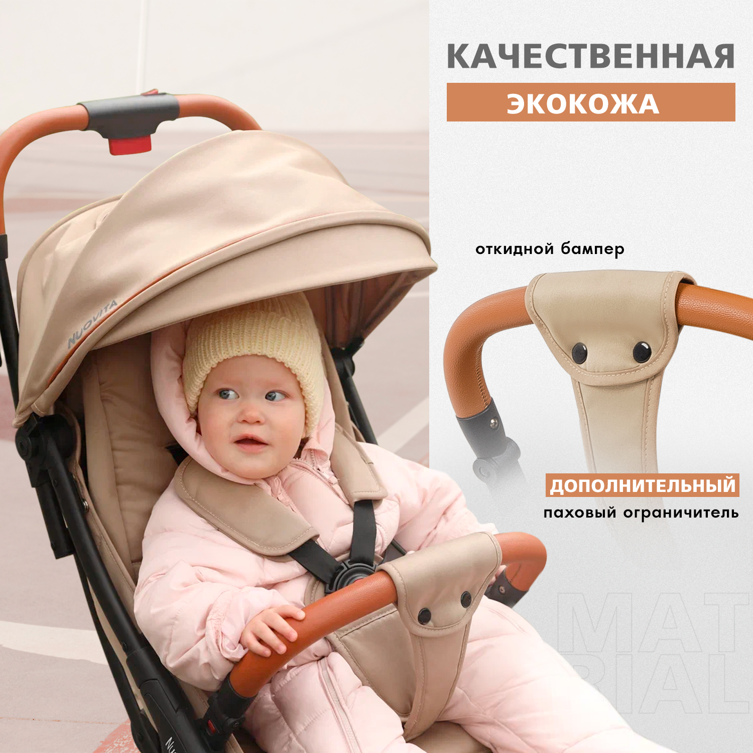 - Родительская ручка не регулируется по высоте и выполнена из качественной эко кожи.