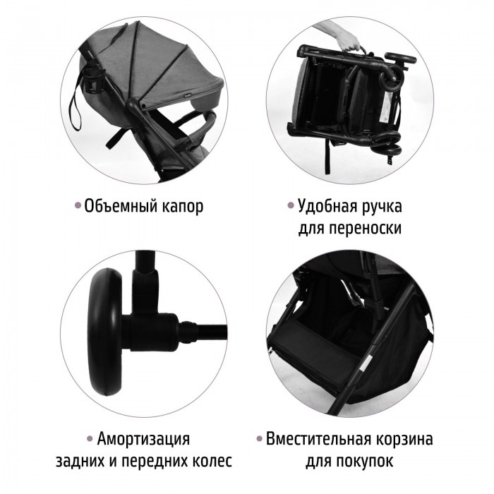 В комплекте: дождевик, москитная сетка, сумка для транспортировки, подстаканник, ремень на ручку, накидка на ножки.