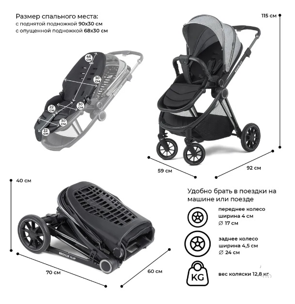 - Размер спального места: 90х30см (с поднятой подножкой) и 68х30см (с опущенной подножкой)