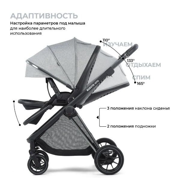 Конструкция прогулочной коляски VETTA предусматривает все необходимые регулировки и позволяет настроить параметры под растущего малыша, чтобы использовать транспорт как можно дольше. В детской прогулочной коляске VETTA два положения подножки, три варианта наклона сиденья (регулируются удобным рычаговым механизмом), три уровня крепления ремней безопасности и телескопическая родительская ручка.