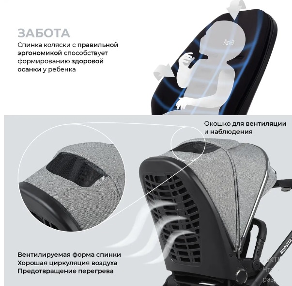 Безопасность малыша в прогулочной коляске обеспечивает откидной бампер с дополнительным паховым ограничителем: он исключает выскальзывание ребенка и при этом не мешает при посадке или высадке маленького пассажира. Удержать на месте даже самого шустрого непоседу помогут пятиточечные ремни безопасности с надежным замком и тканевыми накладками, предотвращающими врезание лямок. Летом дополнительный комфорт обеспечивает вентилируемая форма спинки: она способствует хорошей циркуляции воздуха и предотвращает перегрев и сопутствующие ему потнички и раздражения.