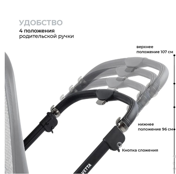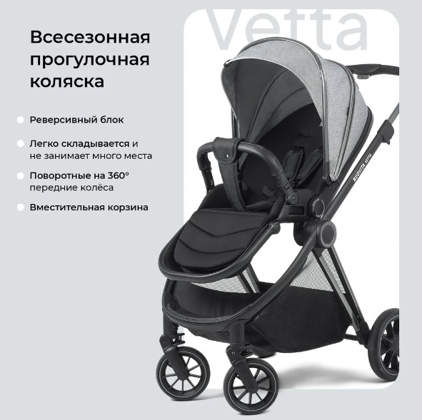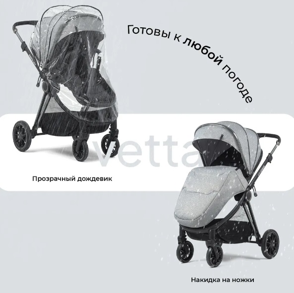 Модель VETTA также можно использовать как детскую коляску для путешествий: она легко складывается и не занимает много места, поэтому ее удобно брать с собой в поездки на машине или на поезде.
