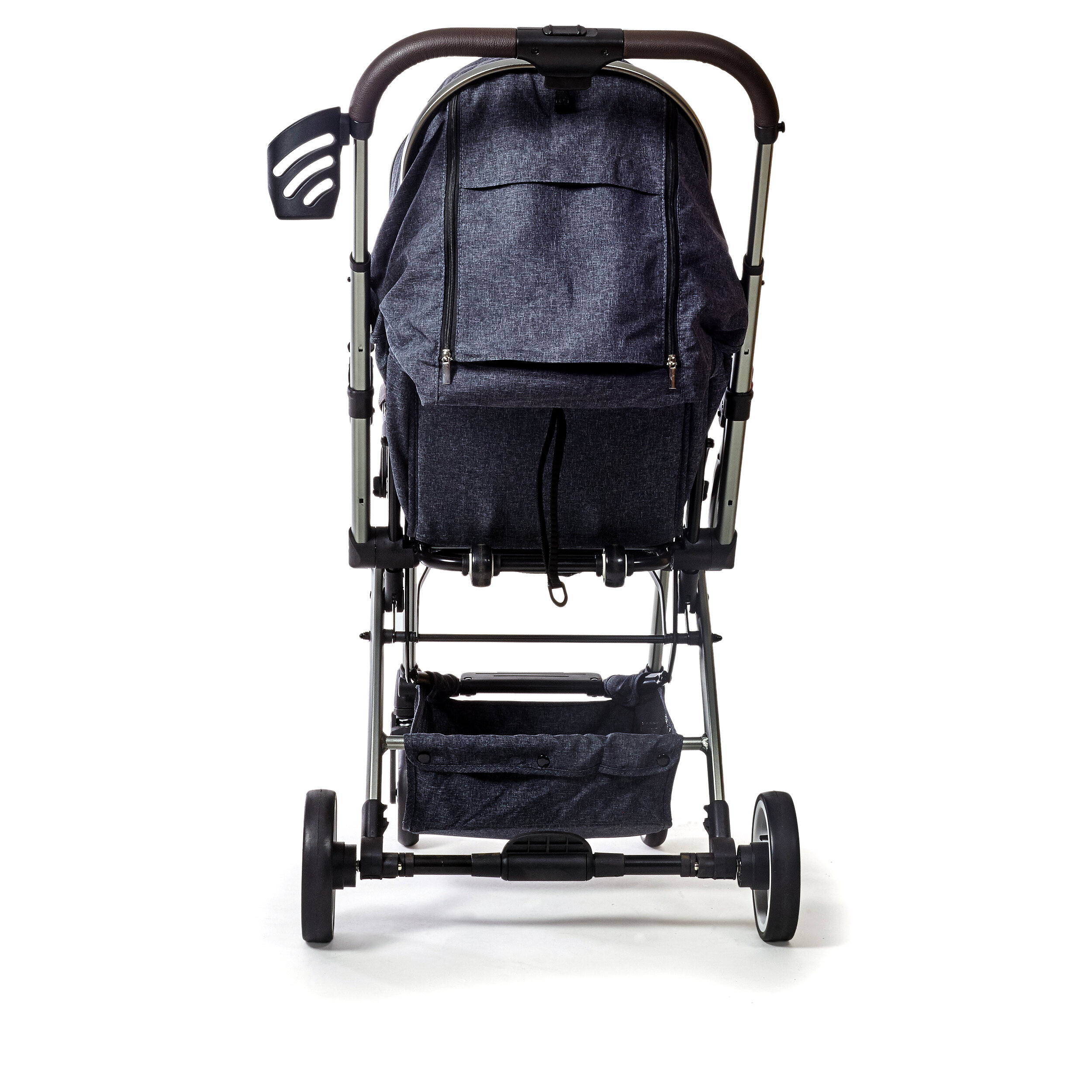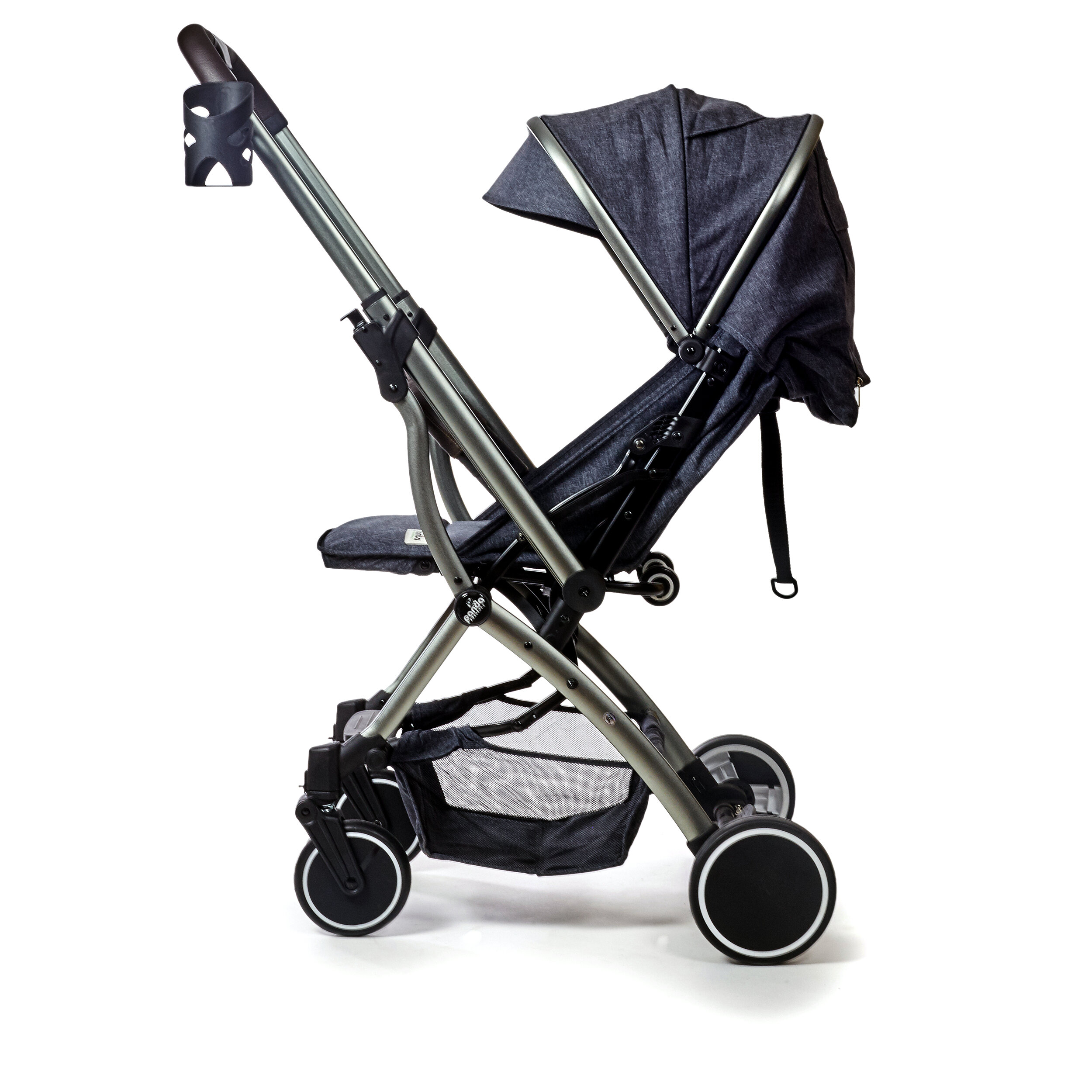 Модель складывается компактно и имеет дополнительные колесики для удобства транспортировки. Вы можете везти коляску как чемоданчик, что очень удобно, если ребенок на руках.