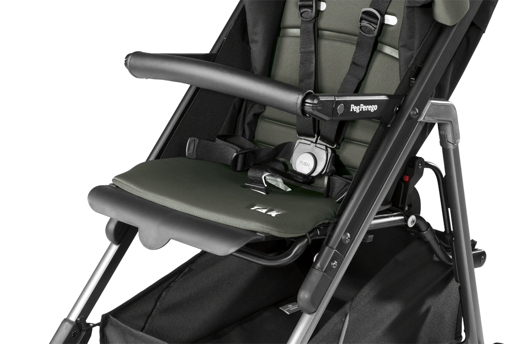 Прогулочная коляска Peg Perego Tak (пег перего так) - новинка 2019 года. Легкая и компактная коляска для ребенка с рождения и до 22 кг. Несмотря на свой очень легкий вес 5, 9 кг она устойчивая, надежная, с комфортным спальным местом для ребенка. Спинка коляска опускается до почти горизонтального положения обеспечивая ребенку правильное положение во время сна. Для ножек предусмотрена небольшая выдвижная подножка. Во время прогулки ребенка надежно удерживают 5-ти точечные ремни безопасности и съемный бампер. Модель очень компактная в сложенном виде, что позволяет без труда брать ее в поездки, по магазинам или в отпуск. Капюшон оснащен защитой от УФ лучей 50+. Благодаря одинарным колесам, амортизаторам и сплошной ручки, модель легко управляется одной рукой.