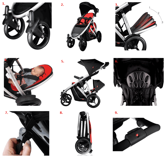 Специальная технология Air-flow в спинки коляски позволяет малышу чувствовать себя комфортно при любой погоде.