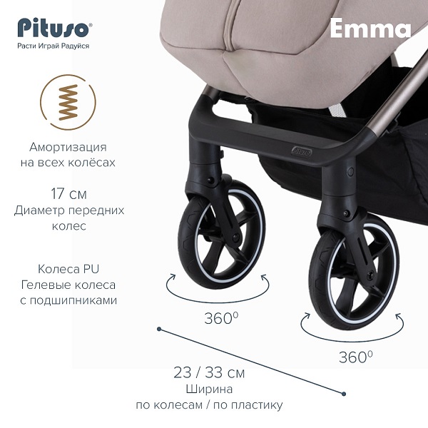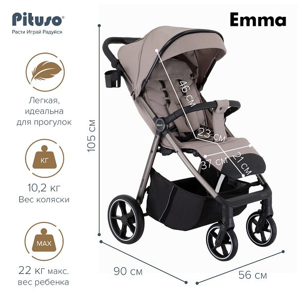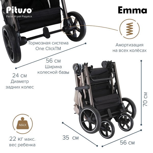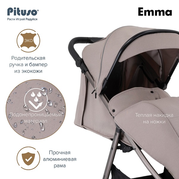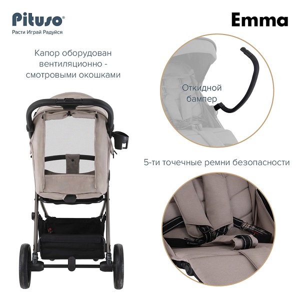 Прогулочная коляска PITUSO EMMA (Питусо Эмма) - качественная и стильная прогулочная модель, идеально адаптирована и для прогулок и путешествий на свежем воздухе, имеет надежную прочную конструкцию. Данная модель представлена в разных расцветках и влюбляет в себя с первого взгляда. Коляска имеет компактный легкий каркас. Она подарит комфорт и удобство не только ребенку, но и его маме.