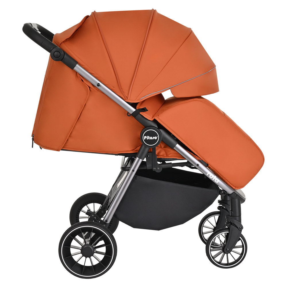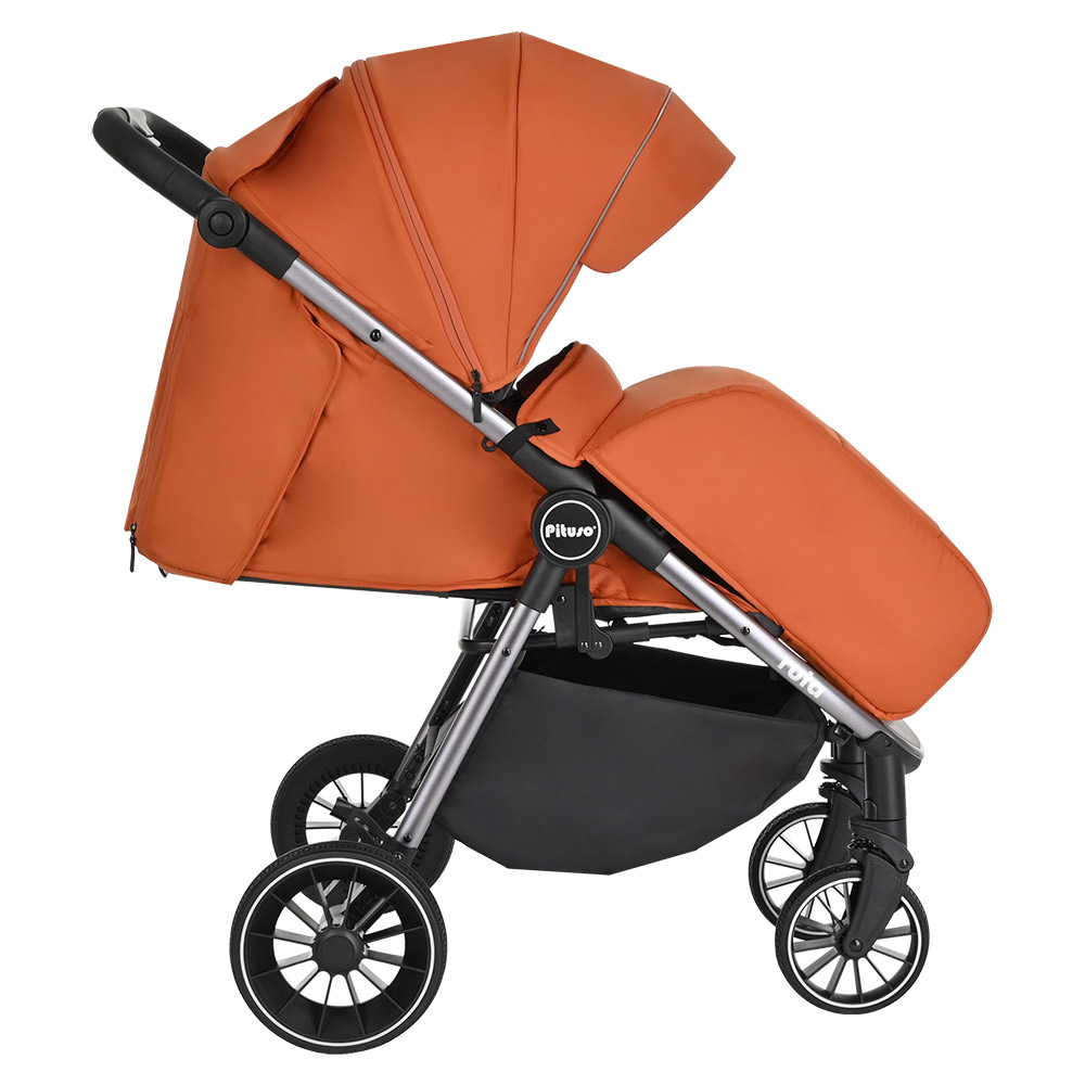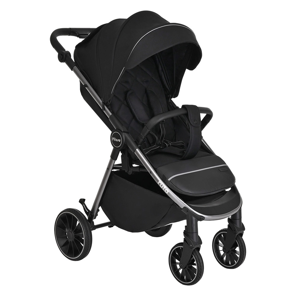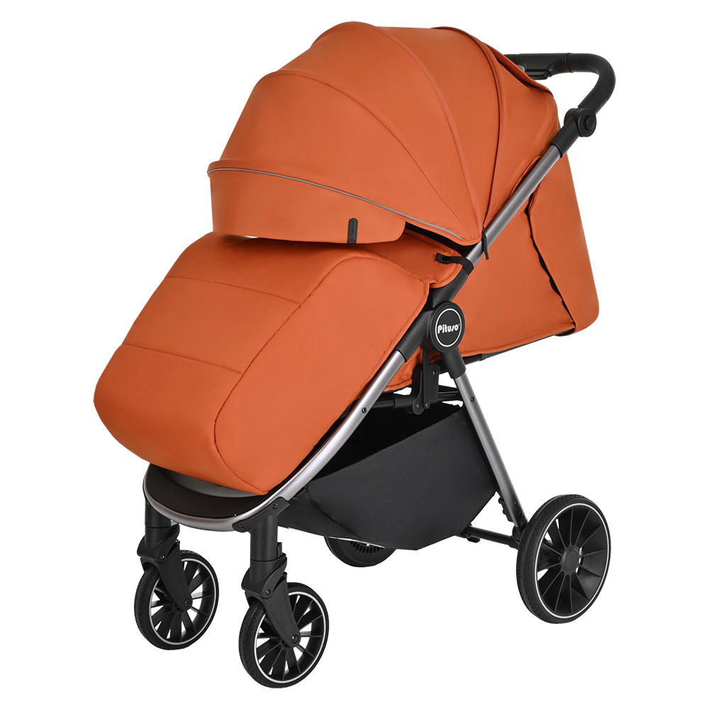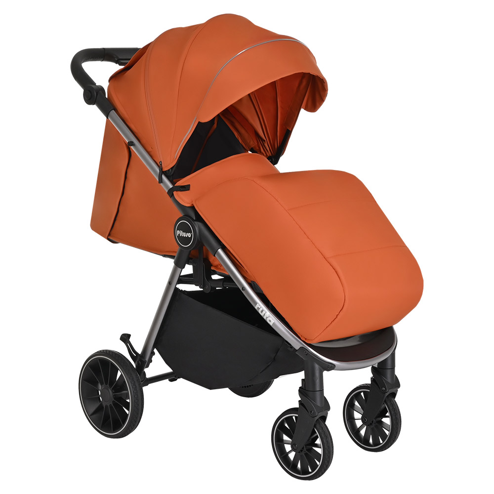 Прогулочная коляска Pituso Ruta (Питусо Рута) - стильная коляска с большим и широким сидением для ребенка от 6 месяцев до 3-4 лет. Коляска имеет легкое и надежное шасси из алюминия, что делает коляску легкой, надежной и удобной для транспортировки. Удобная система сложения позволяет быстро сложить коляску. В сложенном виде коляска фиксируется и самостоятельно стоит в вертикальном положении. У модели очень комфортное сидение с 5-ти точечными ремнями безопасности, качественной обивкой и защитой от сползания. Спинка и подножка регулируются, образуя комфортное место для сна на свежем воздухе до 90 см в длину. Большой, глубокий капюшон надежно защитит ребенка от любой непогоды, а в теплое время обеспечит оптимальную вентиляцию. Передние колеса поворотные, что позволит очень удобно и легко управлять коляской на любых дорогах. Накидка на ножки выполнена из плотного и очень теплого материала в ткани из того же материала что и сама коляски. Накидка крепится при помощи кнопок и держится очень плотно, не давая ребенку замёрзнуть. А ещё у чехольчика на ножки имеется козырек, защищающий личико ребенка от ветра. Наличие накидки на ножки просто необходимая вещь в холодное время. Приятно, что она уже идёт в комплекте с коляской.