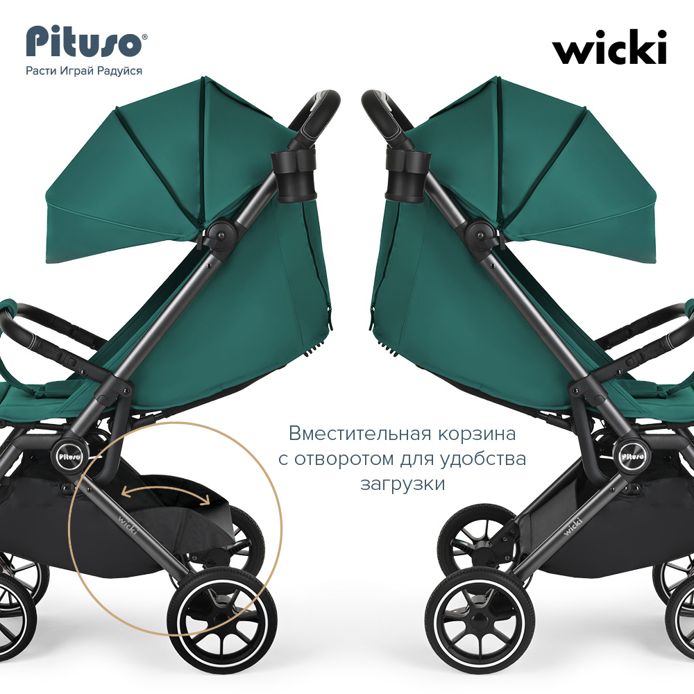 Прогулочная коляска PITUSO WICKI (Питусо Виски) - стильная современная коляска для прогулок по городу и легких путешествий. Компактное сложение коляски позволяет брать ее на борт самолета. Коляска легко складывается одной рукой, что особенно хорошо, если в другой вы держите малыша. Специальный чехольчик для переноски позволит защитить коляску в сложенном виде от грязи и пыли.