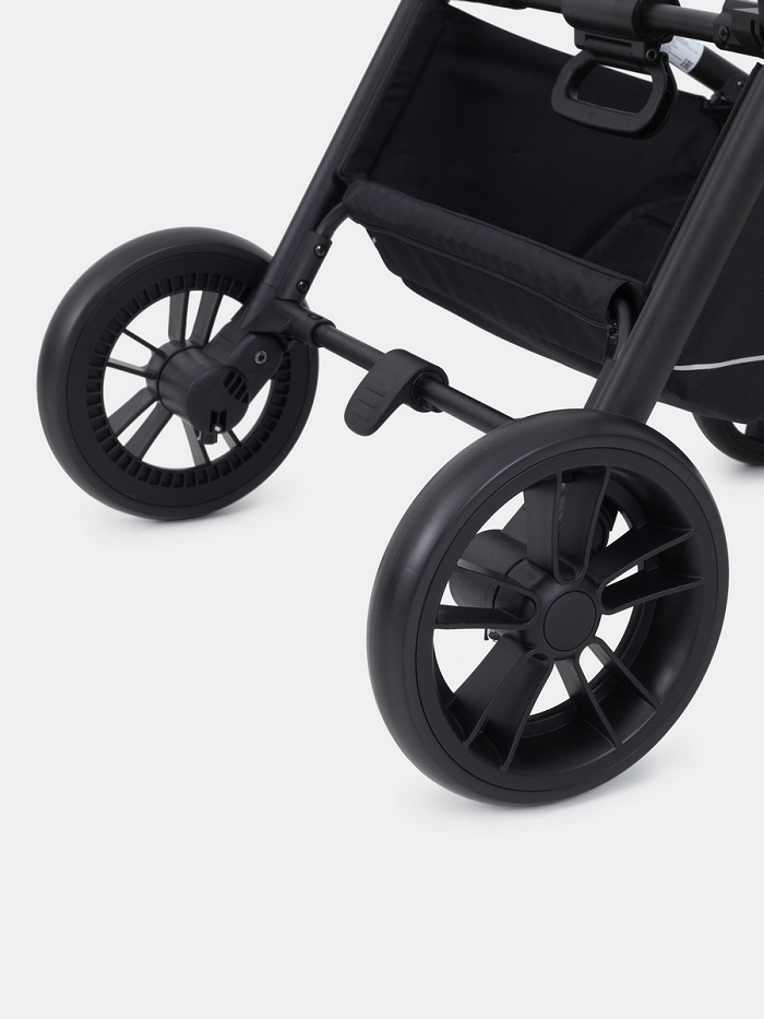Коляска имеет облегченную раму и удобное сложение книжкой. Независимая задняя подвеска - колесо, наехав на препятствие, не передает вибрацию второму колесу, что обеспечивает мягкую поездку маленькому пассажиру. Колеса увеличенного диаметра помогут преодолеть любые препятствия на своем пути. Передние колеса поворотные, с возможностью блокировки для езды по прямой.
