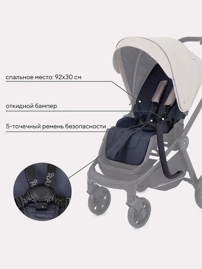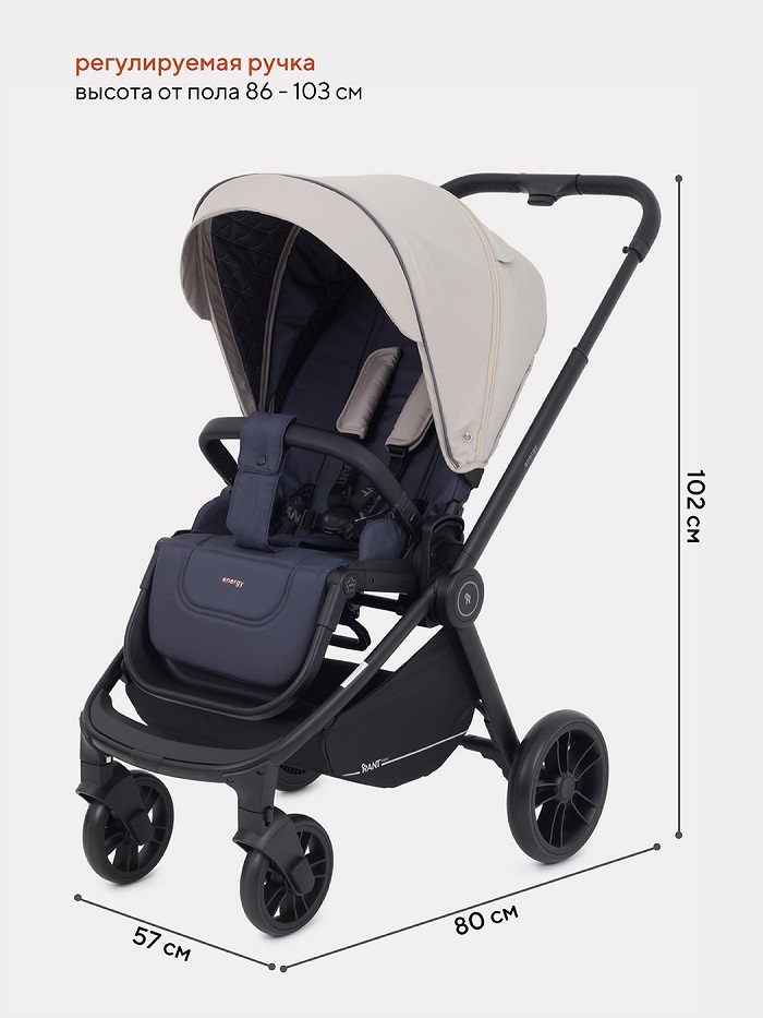 Прогулочная коляска RANT basic ENERGY RA096 (Рант бейсик энерджи) - современная коляска с реверсивным сидением для ребенка от 6 месяцев. Эта коляска отлично подойдет для ежедневных прогулок с ребенком и соответствует современному ритму жизни. Достаточно компактная в сложенном виде, маневренная, на практичных полиуретановых колесах. Сидение, в зависимости от возраста ребенка и ваших предпочтений, можно установить лицом к маме или к окружающему миру. Спальное место очень большое (92х30 см) и имеет регулируемую спинку и подножку. Спинка регулируется механически, что позволит менять наклон спинки одной рукой. Коляска оснащена большим капюшоном со смотровым окошком, вентиляционной секцией, кармашком. Дополнительная секция удобно закрывается на молнию, чтобы не мешать в сложенном виде. Даже с горизонтальным наклоном спинки ребенок будет защищен от непогоды. Чехлы коляски выполнены из ткани с защитой от влаги и солнечных лучей. Обивка коляски (кроме капюшона) выполнена в практичной темной расцветке, на которой практически не видны загрязнения. Для безопасности ребенка предусмотрены 5-ти точечные ремни безопасности, межножный ограничитель от сползания. Бампер легко отстегнуть с любой стороны для посадки и высадки ребенка из коляски. Для прохладной погоды предусмотрена практичная утепленная накидка на ножки.