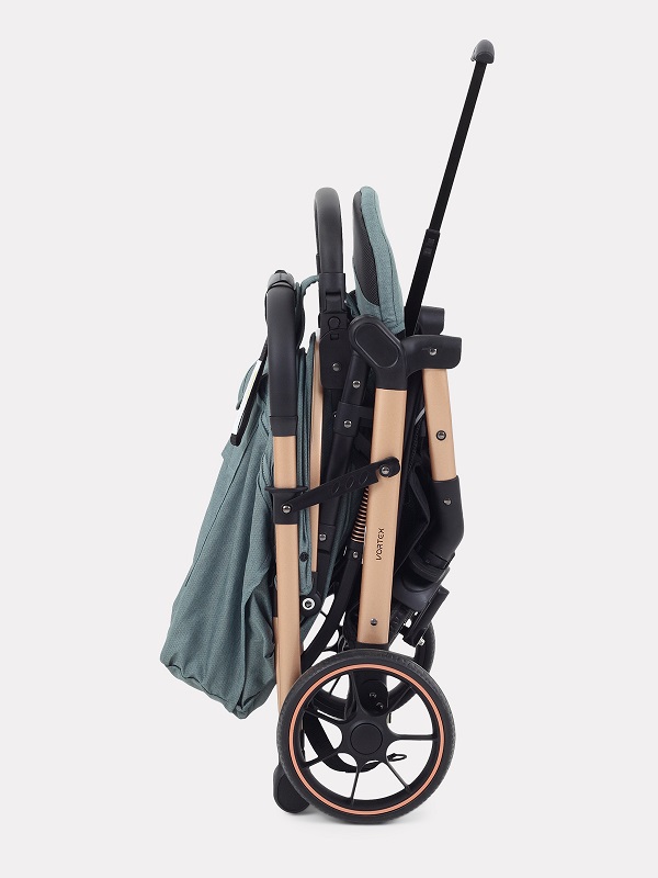- В сложенном виде коляска устойчиво стоит в вертикальном положении
