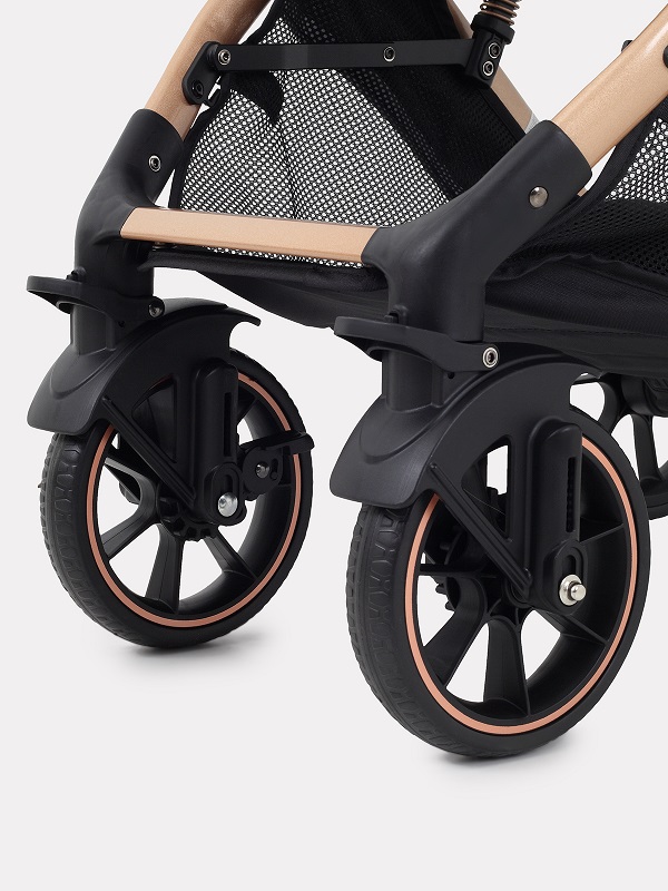 Коляска VORTEX покорит вас своими сверхманевренными колесами, передние из которых поворотные. Мягкая амортизация сгладит неровности дороги и подарит вам тихий и плавный ход. Колеса не боятся проколов и не сдуваются.