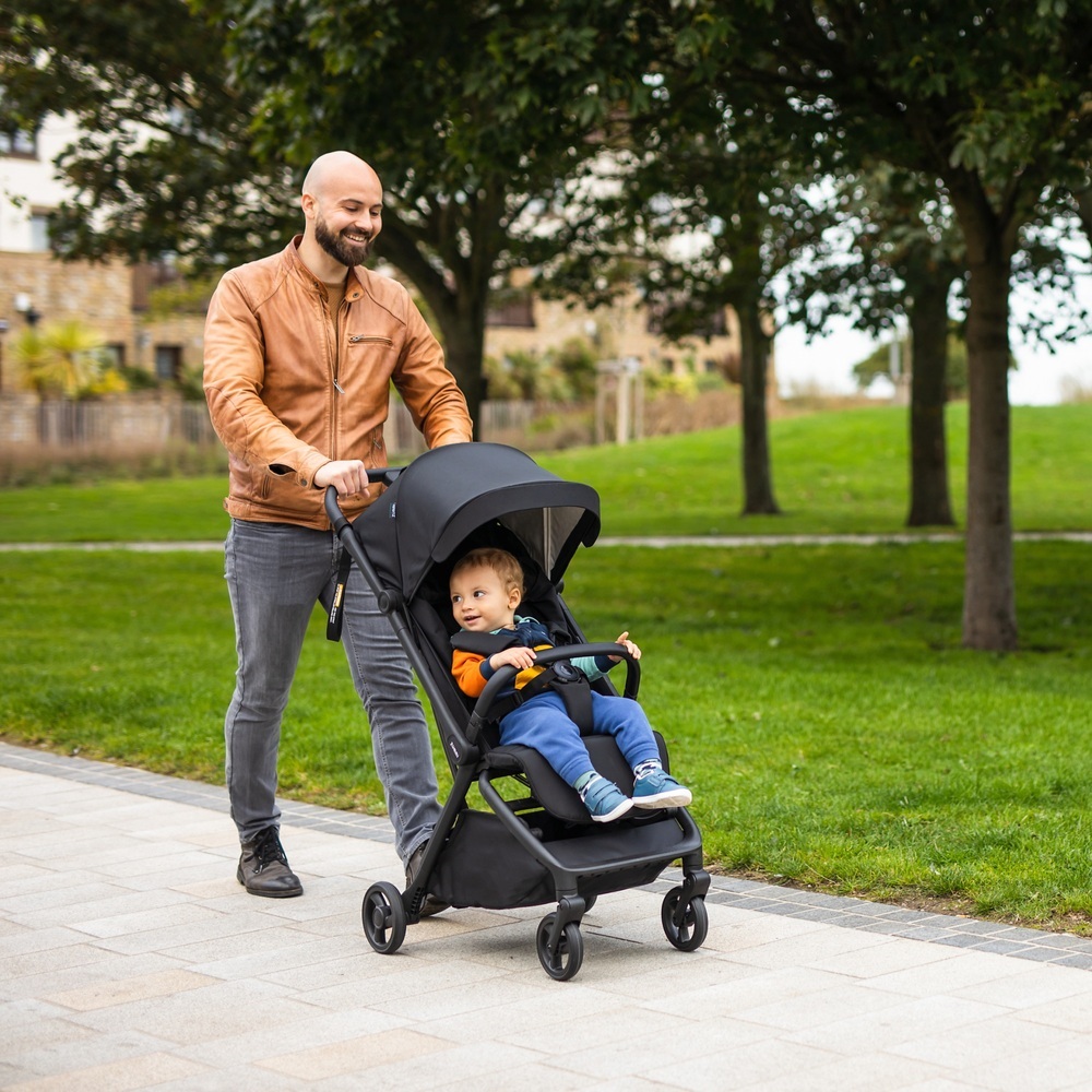Нажатием всего одной кнопки коляска моментально складывается до очень компактных размеров. Отличный вариант для поездок на природу, дачу, в отпуск.