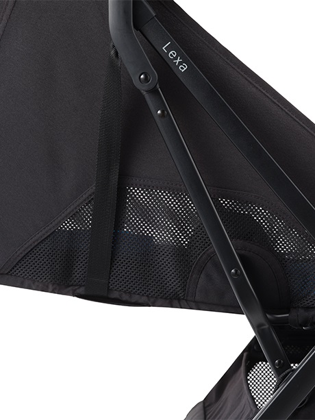 Плотная износостойкая ткань с грязеотталкивающим покрытием прекрасно справится с любыми прогулками и путешествиями. Коляска оснащена большим капюшоном со смотровым окошком. Коляска LEXA Select прекрасный вариант для летних прогулок, так как в обивке коляски предусмотрены специальные вентиляционные отверстия, способствующие хорошей циркуляции воздуха.