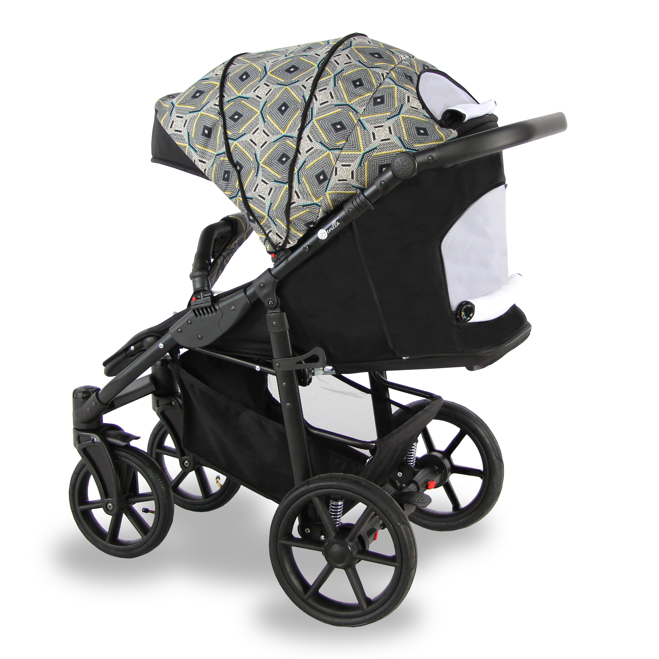 Прогулочная коляска Sevillababy Colibri (Севиллабеби Колибри) - стильная, всесезонная коляска для ребенка от 7 месяцев до 3-4 лет. Яркий и модный дизайн, а так же большая цветовая гамма обязательно понравится молодым родителям. Модель представлена на легкой алюминиевой раме и больших надувных колесах, с прекрасной амортизацией. Любые ямы и неровности дороги будут с легкостью преодолены, не тревожа сон ребенка. А для лучшей управляемости передние колеса оснащены поворотным на 360 градусов механизмом, который легко блокируется при необходимости.