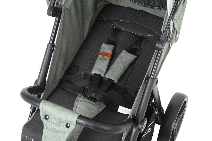 Для безопасности ребенка предусмотрены 5-ти точечные ремни безопасности с мягкими накладками, паховый ремешок от сползания, бампер их эко кожи. Бампер легко отстёгивается и откидывается одной рукой, чтобы посадить, или достать ребёнка.