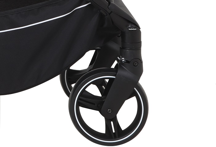 - Передние поворотные колеса с амортизацией и блокировкой