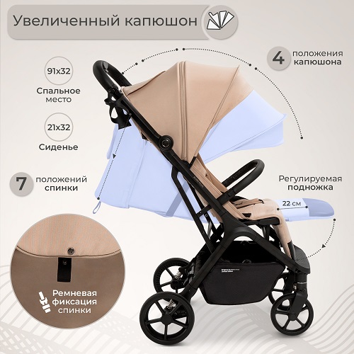 Sweet Baby Aura Plus - это качественная прогулочная коляска с небольшим весом, всего 8,1 кг, большим спальным местом и очень компактным сложением. С такой коляской будет приятно путешествовать, брать в поездку на машине. Где бы вы не оказались, у ребенка всегда будет комфортное спальное место 91х32 см, с регулируемой спинкой от сидячего до горизонтального положения и регулируемой подножкой. Большим преимуществом коляски являются магнитные замки, которые значительно облегчат маме пристегивание/ отстегивание ребенка в коляске. Коляска оснащено очень большим комфортным капюшоном, который закроет ребенка от света и шума, позволив отдохнуть во время длительной прогулки или поездки. Закроет от ветра и осадков. На капюшоне предусмотрено смотровое окошко для контроля за ребенком и удобный кармашек для самых нужных вещей. А если вещей на прогулку нужно больше, пригодится стильная сумка в цвет коляски, которая идет в комплекте.