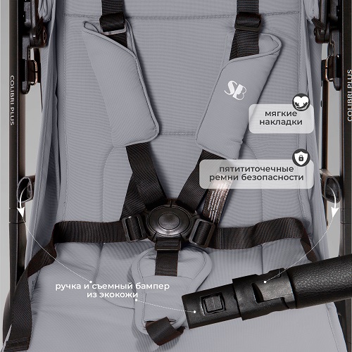 - 5-ти точечные ремни безопасности с мягкими накладками.