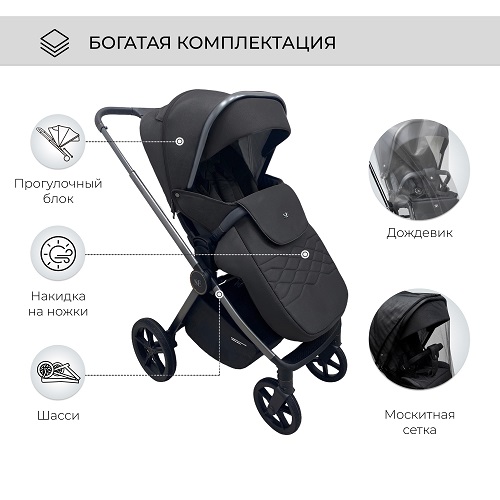 В комплекте: накидка на ножки, дождевик, москитная сетка.