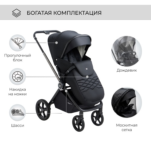 Прогулочный блок коляски Elegante обладает рядом удобных решений и особенностей, среди которых: