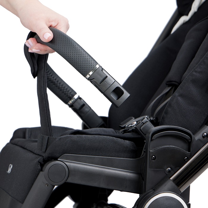 ✔ бампер из эко-кожи легко поворачивается в сторону для посадки малыша;