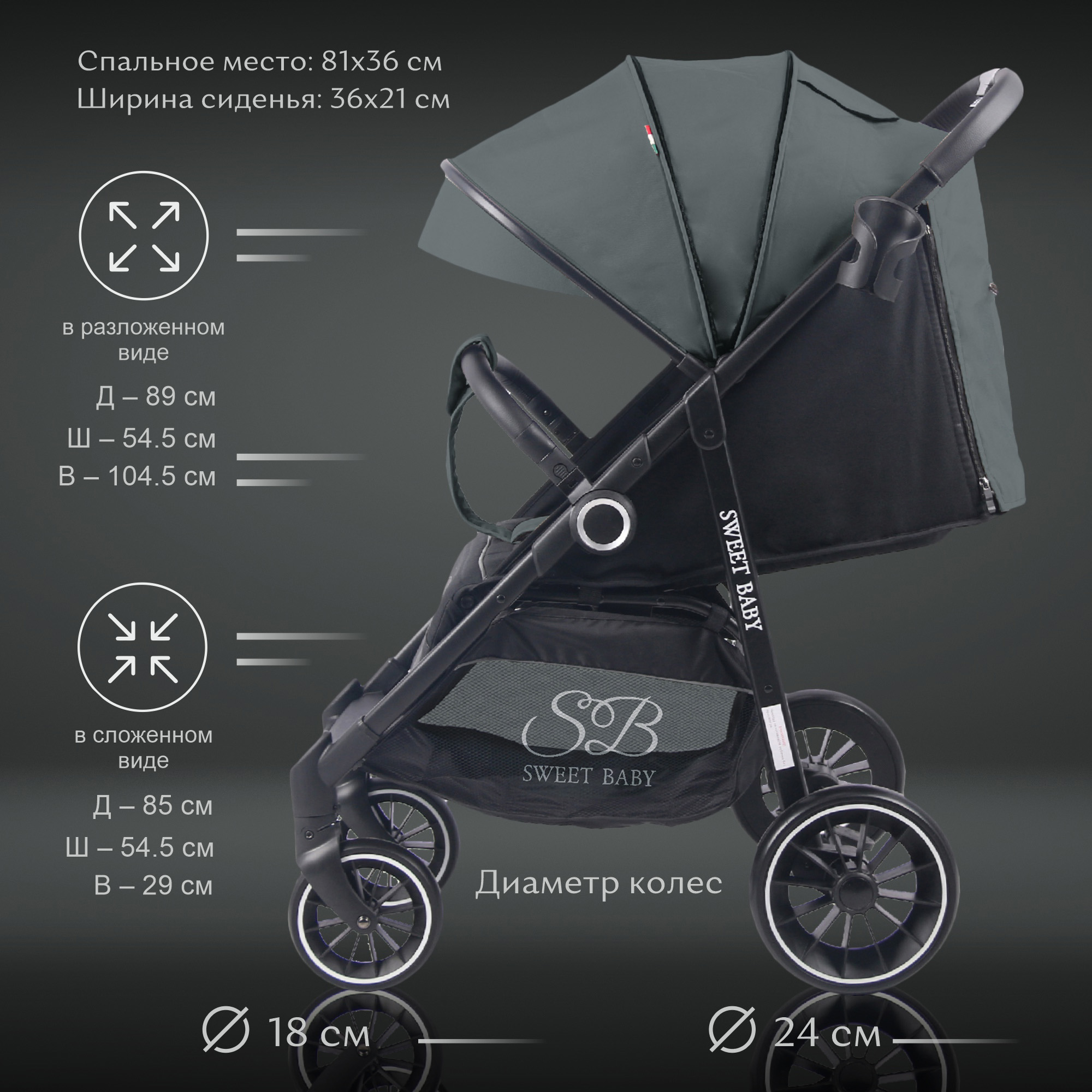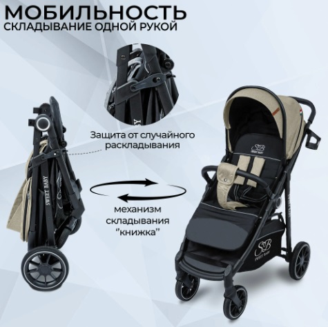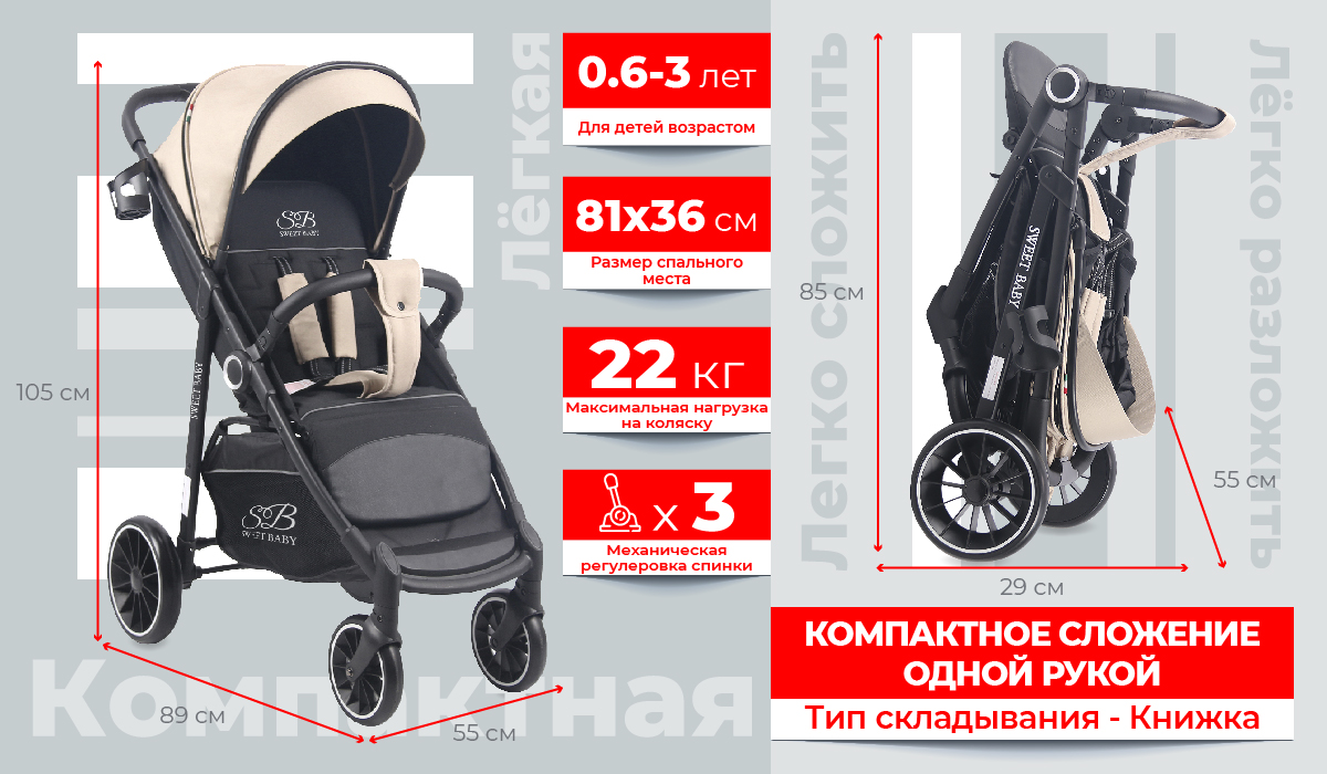 Вес коляски всего 8 кг, а сложение быстрое и удобное. В сложенном виде коляска компактна и удобна для транспортировки. Это идеальный транспорт для поездок на машине, общественном транспорте или путешествий.