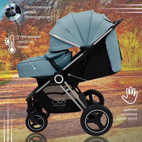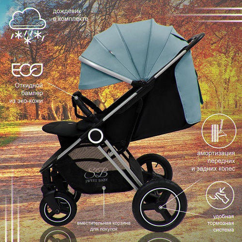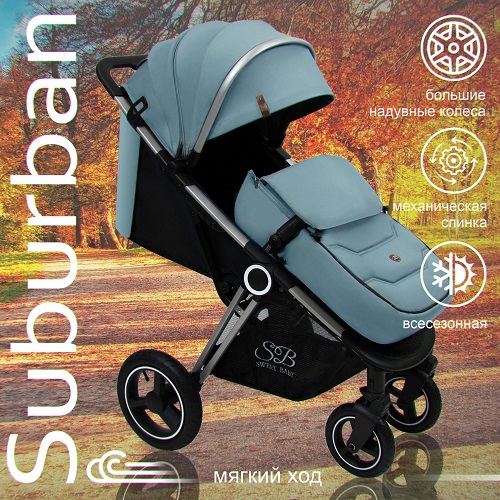 Sweet Baby Suburban Light (Свит беби субурбан лайт) - большая всесезонная коляска для ребенка от 6 месяцев до 3 лет. Стильная и надежная модель с удобным управлением и высокой проходимостью. Коляска оснащена надувными колесами и амортизацией, что делает ход коляски мягким, плавным и бесшумным. При этом коляска легко преодолеет любые препятствия на своем пути, проедет по бездорожью, снегу, песку. Благодаря небольшому весу и передним поворотным колесам коляска удобно и легко управляется. Комфортное сидение с регулируемой спинкой и подножкой позволит ребенку удобно сидеть и разглядывать мир вокруг или удобно спать на улице. Теплая накидка позволит регулировать температуру внутри коляски. Большой капюшон может полностью укрыть ребенка от любой непогоды или яркого солнца. А если ребенок спит, смотровое окошко позволит наблюдать за малышом, не тревожа его. Коляска компактно складывается для хранения и транспортировки.