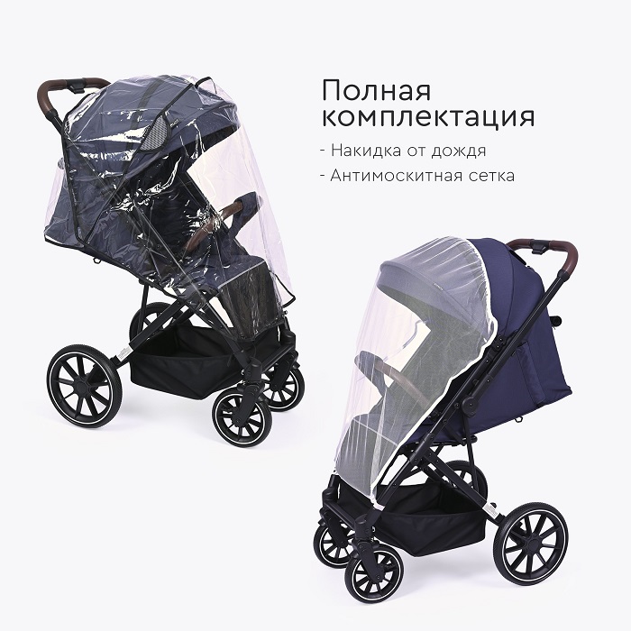 Коляска оснащены всеми необходимыми аксессуарами, которые сделают прогулки комфортными в любую погоду.