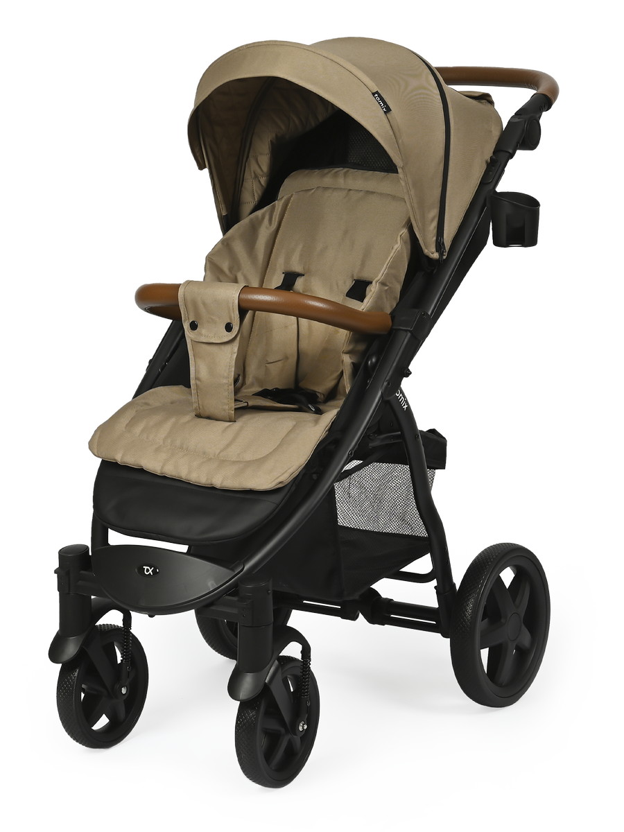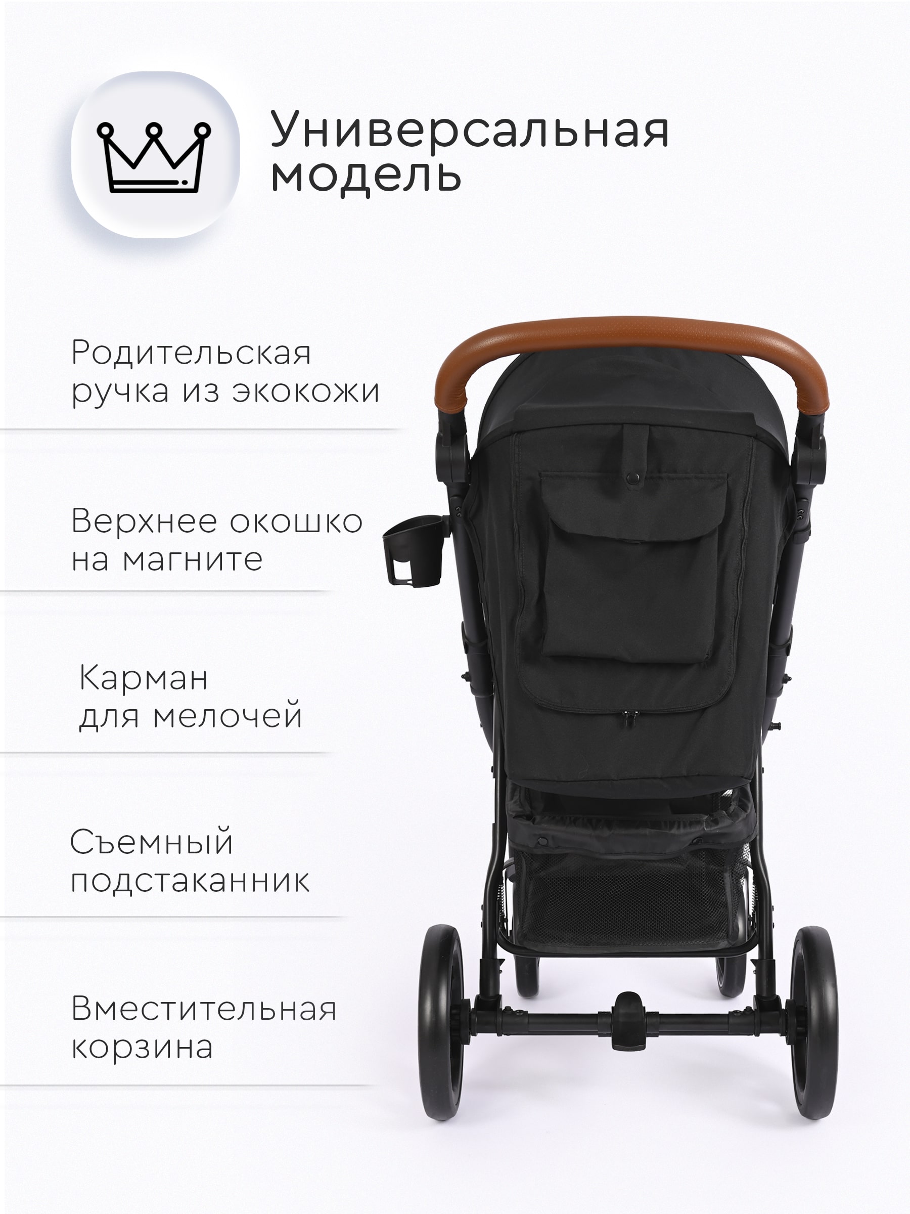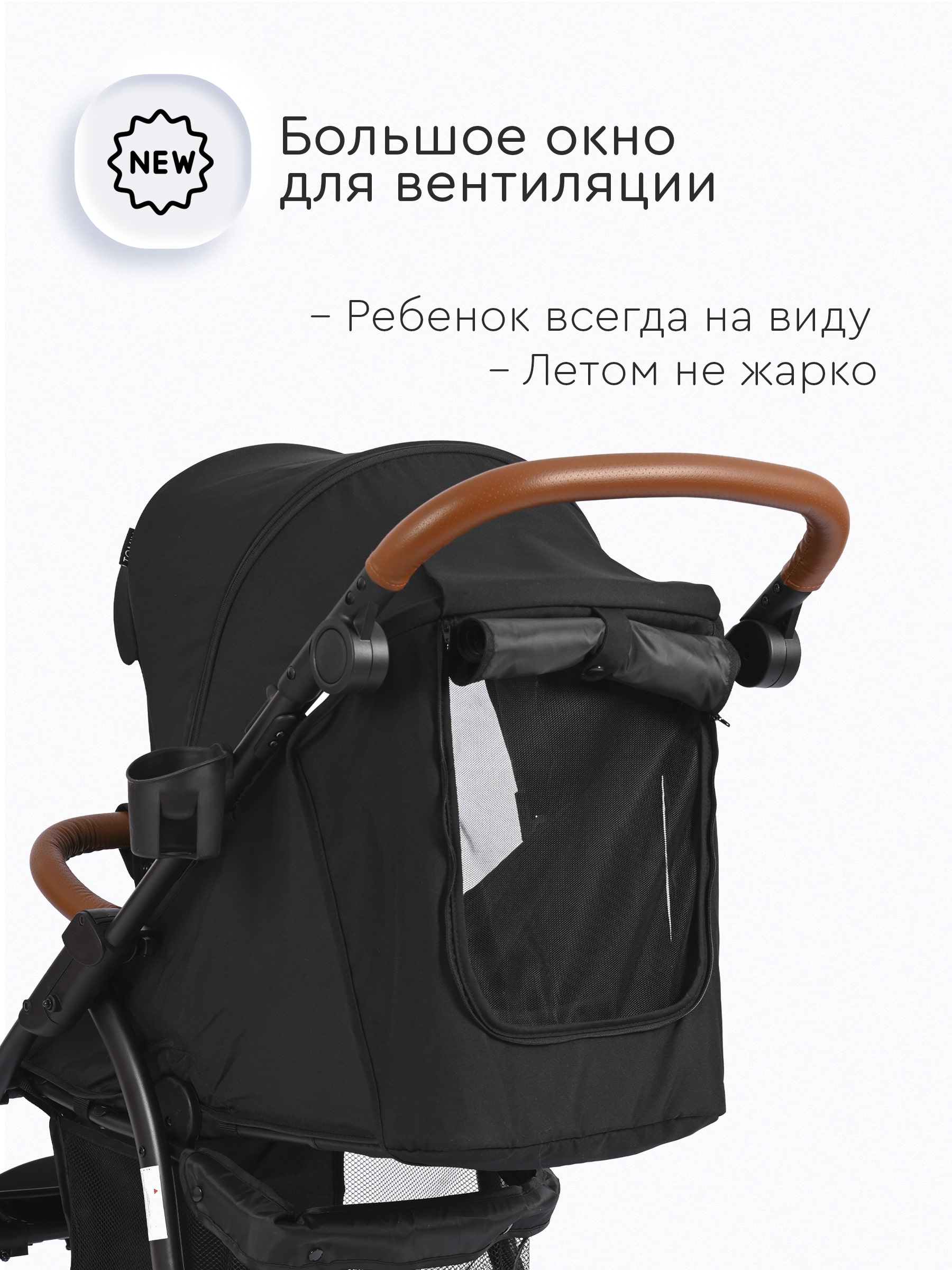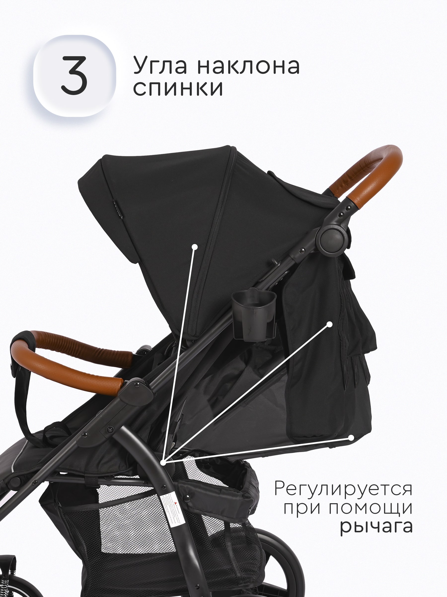 Дизайн коляски продуман до мелочей, глубокий красивый цвет ткани, ручка и бампер из экокожи делают эту модель необыкновенно стильной, а подножка из прорезиненного материала и легкая в уходе ткань обеспечивают практичность и удобство использования. В комплекте с коляской идут дождевик, москитная сетка и подстаканник.