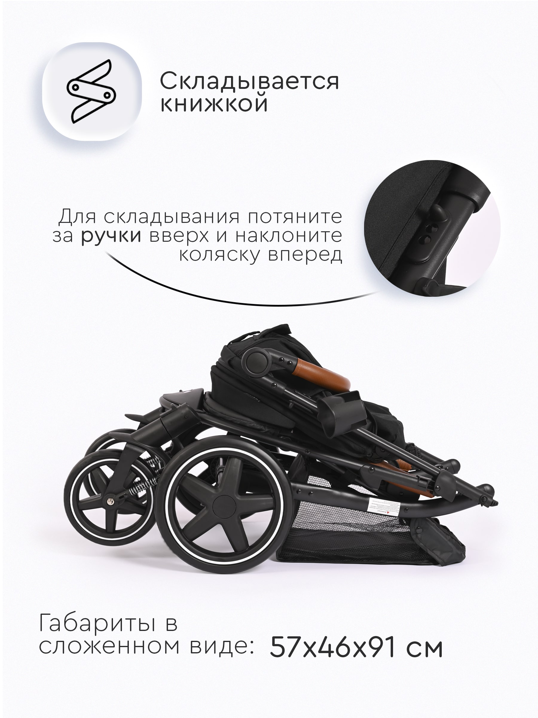 Коляска очень удобно складывается, что позволит путешествовать с коляской, ездить на транспорте или удобно и компактно хранить дома.