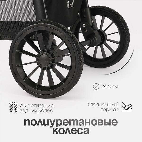 - Полиуретановые колеса большого диаметра для легкого преодоления любых препятствий.