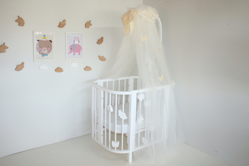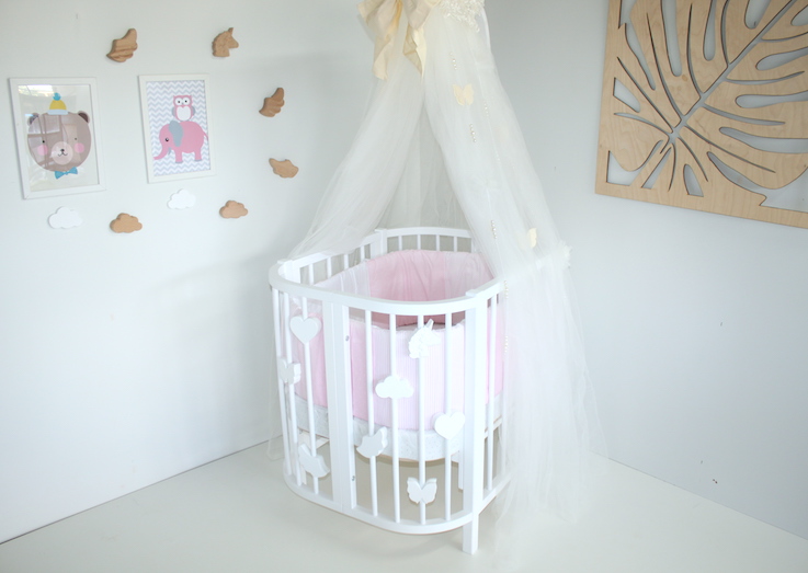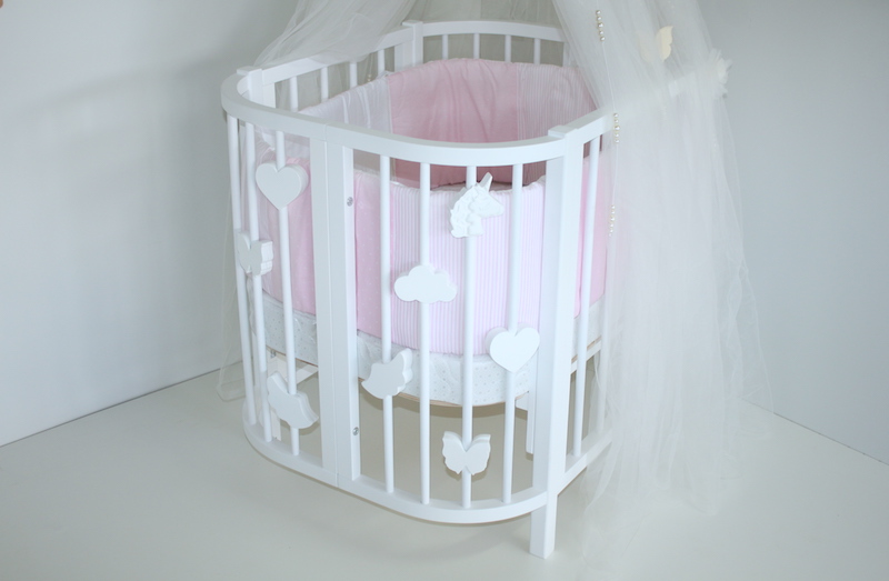 Дополнительно можно приобрести: продольный маятник, матрас, расширение 2х типов (120 и 145 мс ), декор и держатель для балдахина