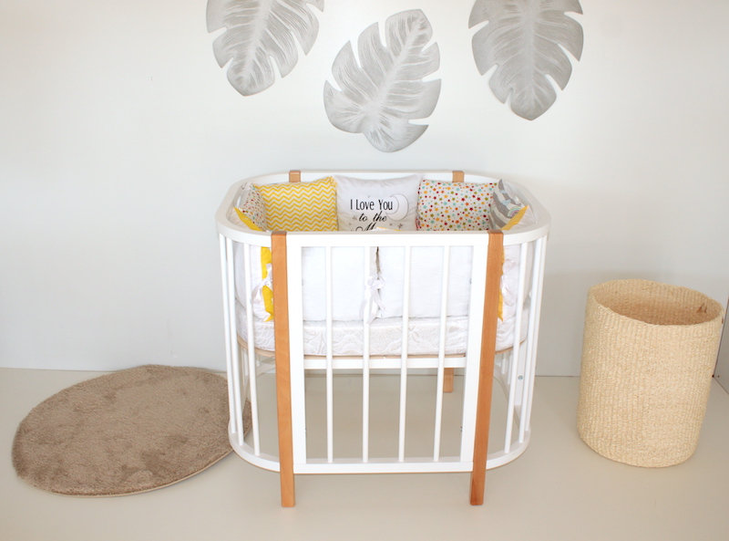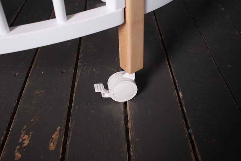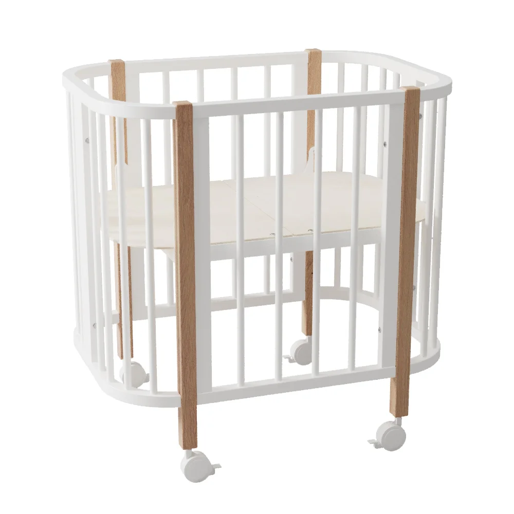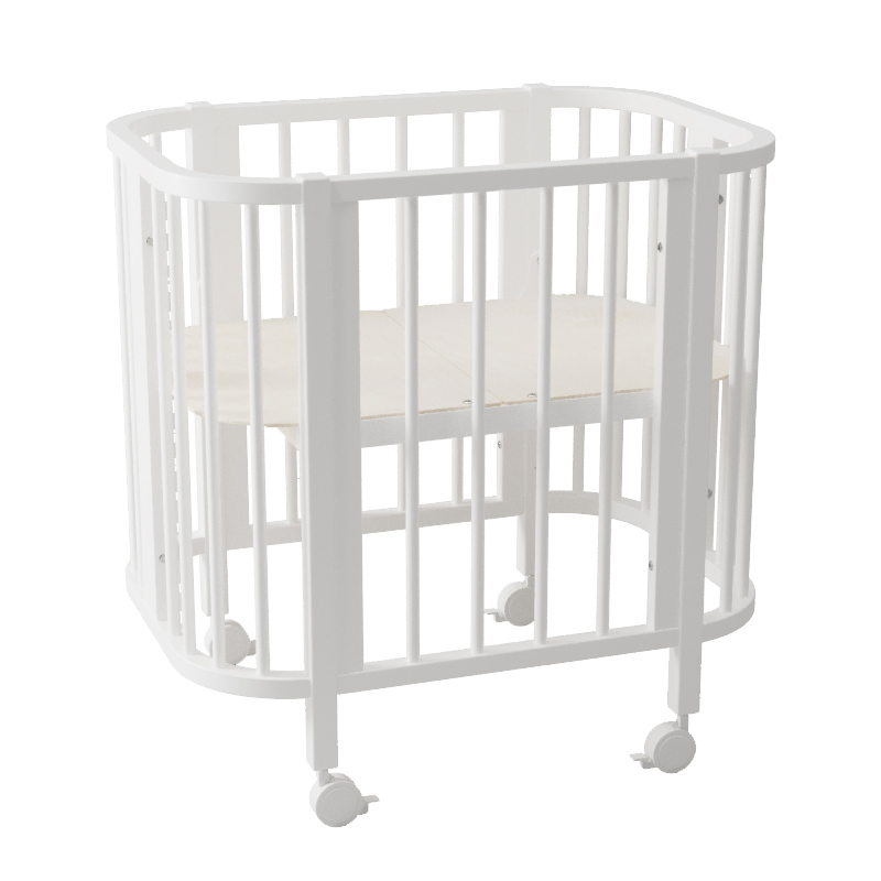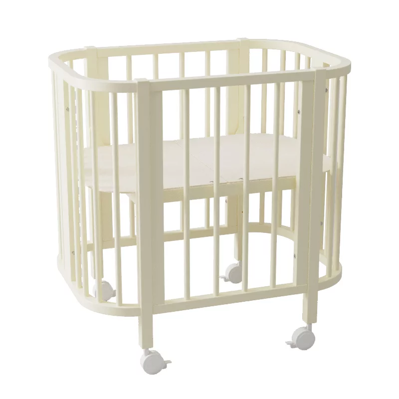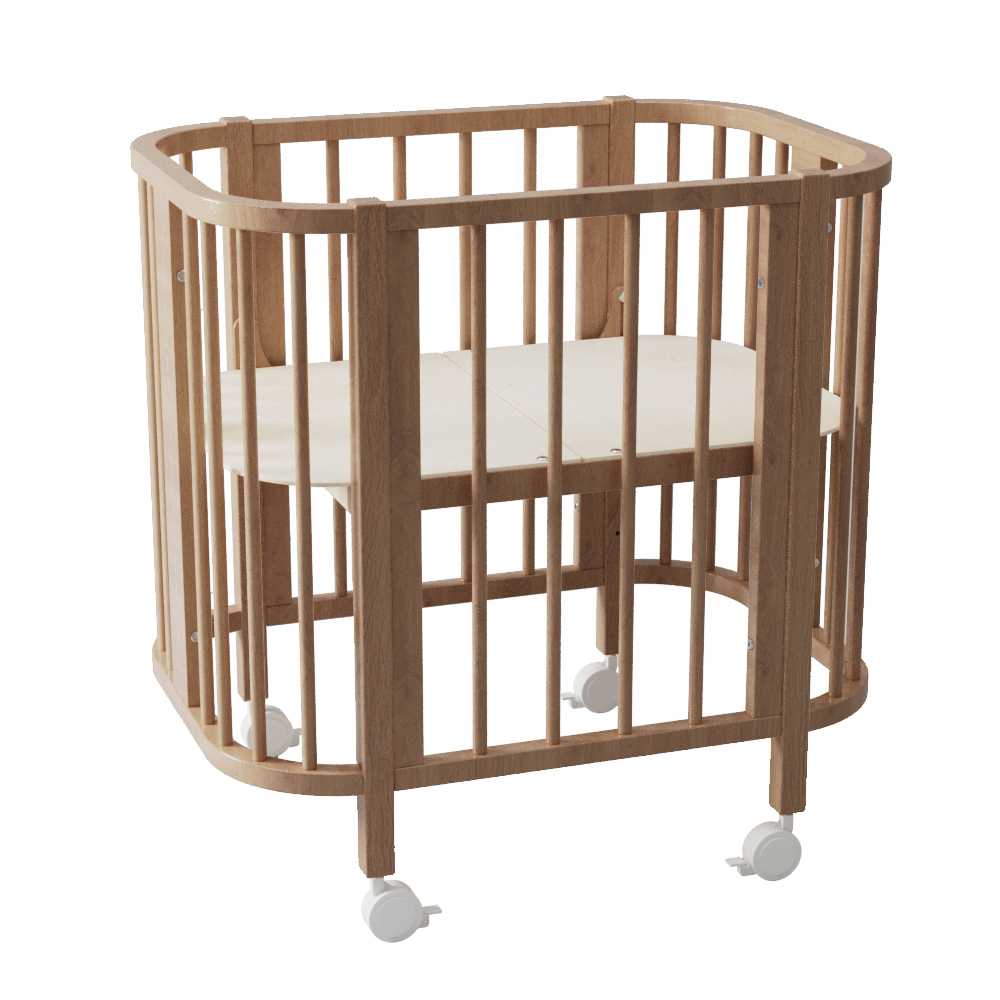 Компактные размеры кроватки позволяют легко вписать ее даже в небольшое пространство. Благодаря небольшой ширине и колесам кроватка легко проходит через дверные проемы, что позволит легко передвигать ее по квартире.