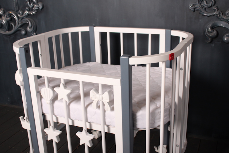- Может использоваться как колыбелька, приставная кровать, манеж, диванчик.