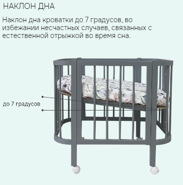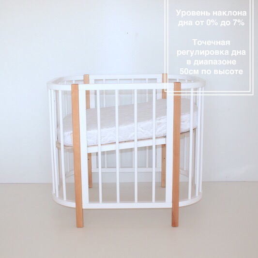 - Дно кроватки уникальное, его можно зафиксировать в любом положении в пределах 50 см. по высоте.