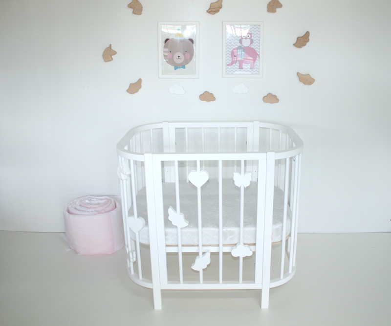 Кроватку можно увеличить до 120 или 145 см в длину с помощью покупки дополнительного расширения. Так же к кроватке можно приобрести маятник или декоративные фигурки.