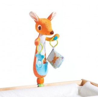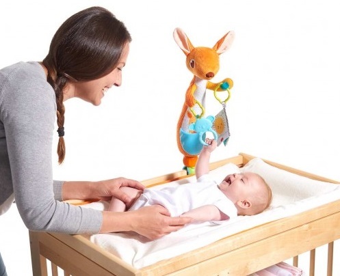 Развивающая игрушка Tiny Love Кенгуру (Тини Лав) - эта красивая, качественная игрушка-держалка для ребенка с рождения. Игрушка оснащена универсальным креплением и может крепиться практически к любому бортику: кроватка, манеж, пеленальный столик, стульчик для кормления. Она поможет увлечь ребенка пока родители осуществляют все необходимые процедуры ребенку, кормят или переодевают его. Ее можно использовать как держалку для игрушек, а в комплекте с кенгуренком уже идут две игрушки: книжка -шуршалка из 6 страниц и мягкое кольцо - прорезыватель Коала. А когда ребенок подрастет кенгуру станет верным мягким другом, с которым можно играть (держатель снимается).
