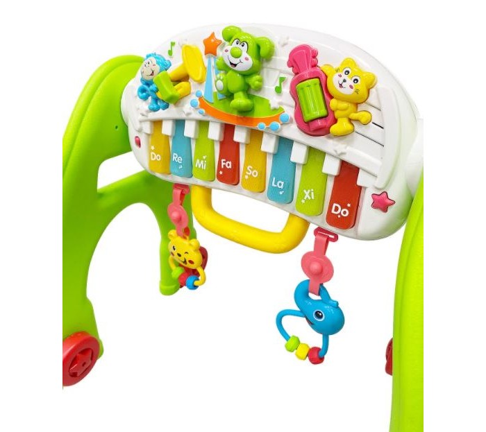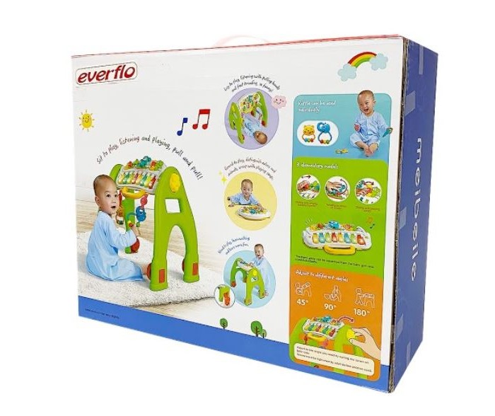 Развивающий игровой центр-каталка Everflo Green joy HS0374904 (Еверфло Грин Джой) — это многофункциональная игрушка, которая надолго увлечет ребенка с самого рождения! Многообразие музыкальных кнопочек, рычагов, клавиш познакомят малыша с различными звуками, разовьет его память, внимательность, научит различать цвета, а также поможет в освоении хождения. Модель представляет собой музыкальный модуль на 4-х ножках. Модуль на лицевой стороне является полностью интерактивным, состоит из 8 клавиш, рычагов и кнопочек, каждые из которых обладают уникальным звучанием, кроме того, имеет 2 подвесных игрушки. Вся система очень мобильна: можно изменять положение музыкального модуля, делая его горизонтальным или вертикальным, позднее можно активировать колеса, чтобы ребенок катал игрушку при хождении. Специальный ручник поможет малышу вставать и держаться за модуль.