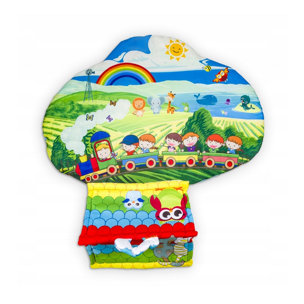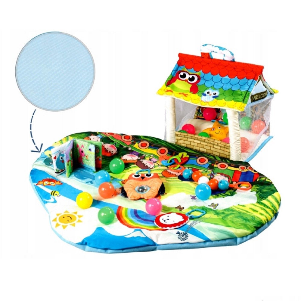 - Дно коврика изготовлено из толстого материала и мягкого наполнителя, что гарантирует ребенку тепловой комфорт, а так же мягкое основание для игр.