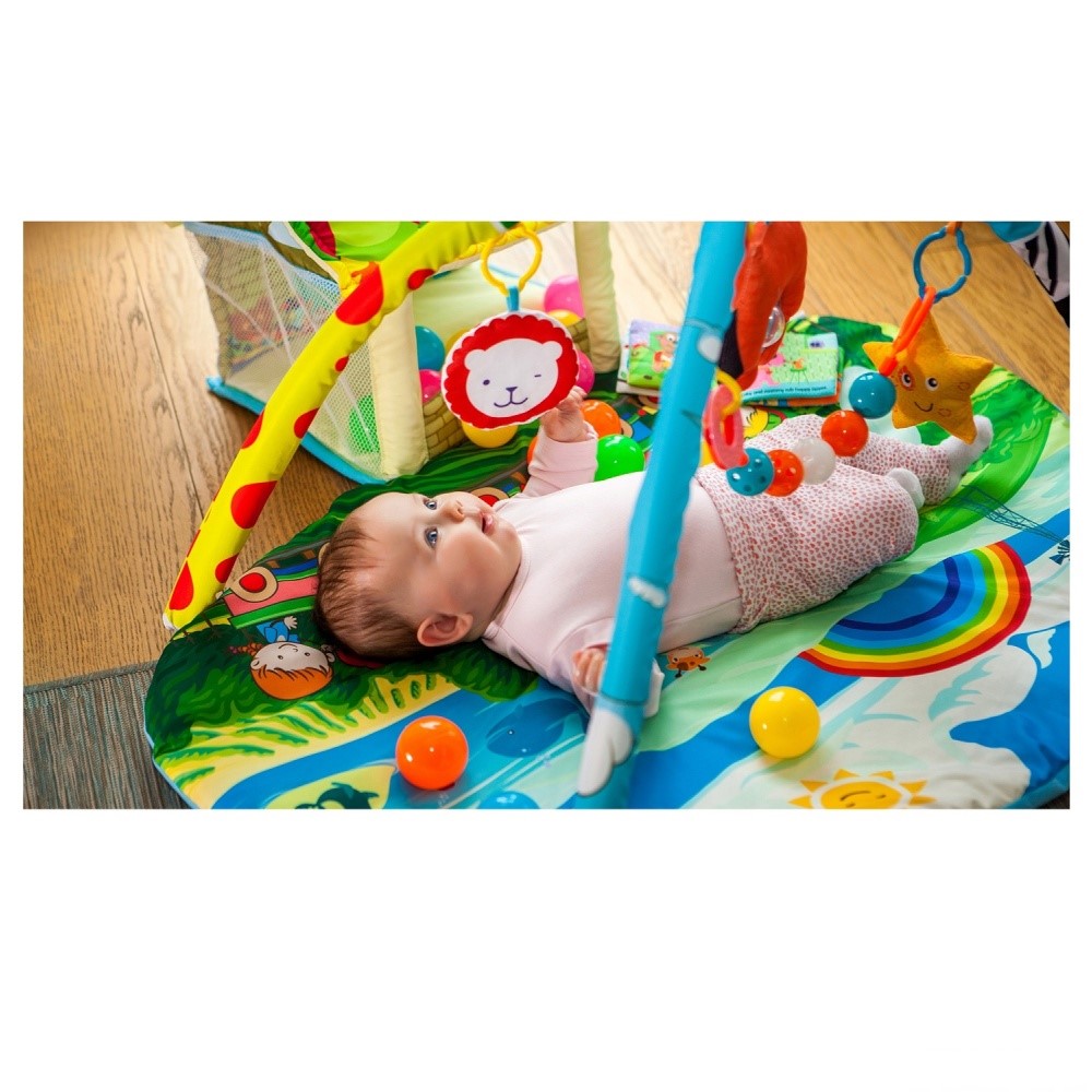 - Коврик развивает зрительную, слуховую координацию и движение. Ребенок тянется за игрушкой, укрепляет мышцы и улучшает способность удерживать голову в определенном положении.
