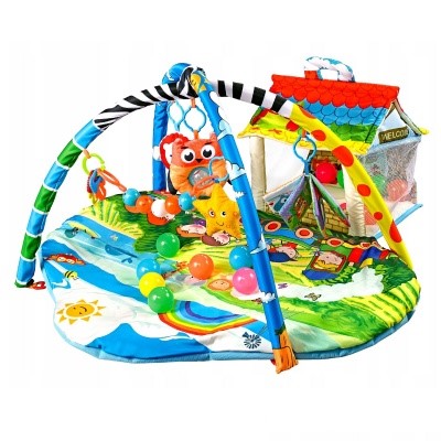 Развивающий коврик Lionelo Imke (лионело имки) -интересный игровой коврик со съемными дугами, шариками и домиком. Прекрасный вариант для игр и развития ребенка с рождения. Яркие игрушки стимулируют развитие малыша, стимулируют его к движениям. Теплый и мягкий коврик сделает пребывание малыша на нем удобным и безопасным. А игрушки в дальнейшем можно использовать в коляске или автокресле.