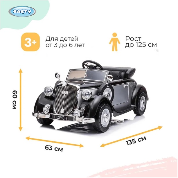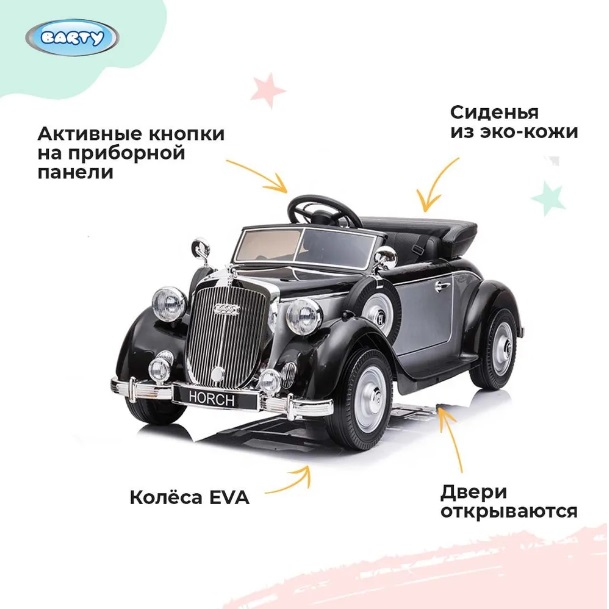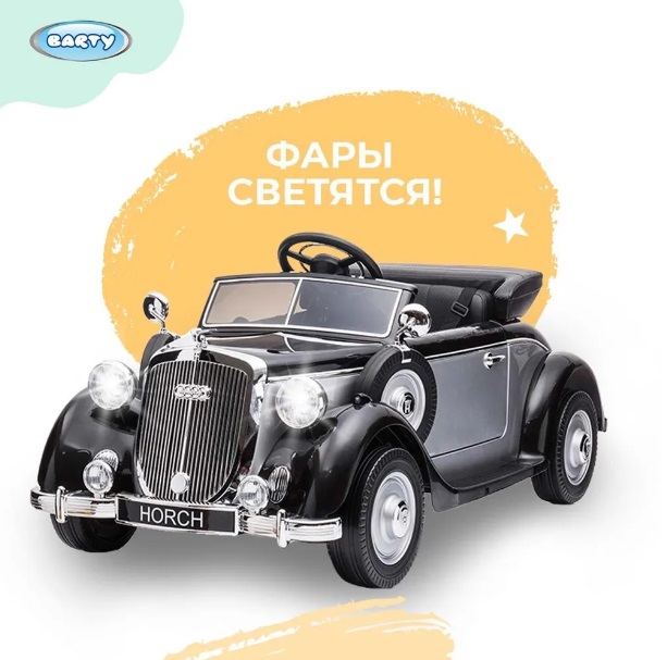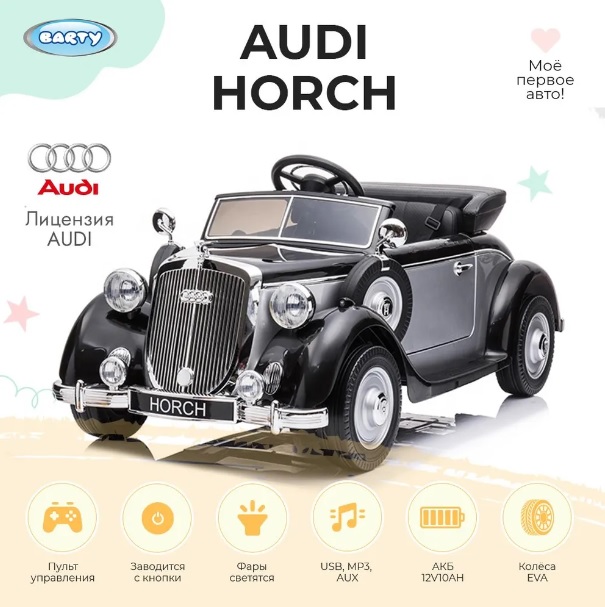 Детский электромобиль Barty AUDI Horch JE1005 (барти ауди хорш) - уникальный автомобиль в ретро стиле для ребенка от 3 до 6 лет. Модель изготовлена по официальной лицензии популярного автоконцерна.